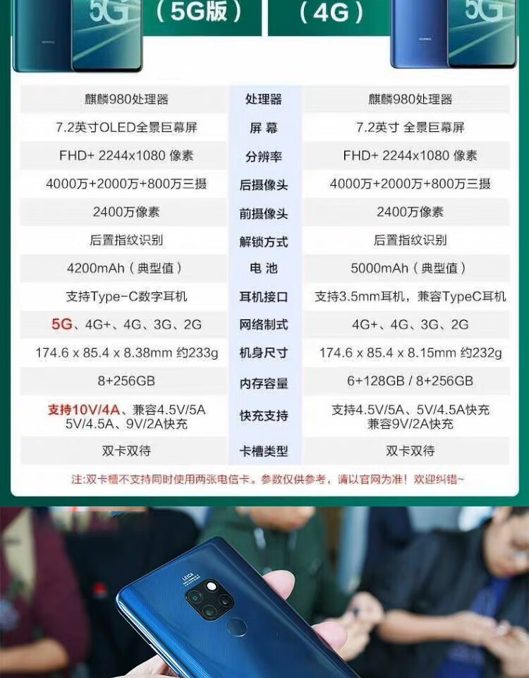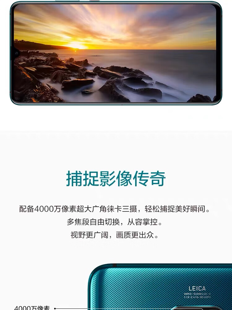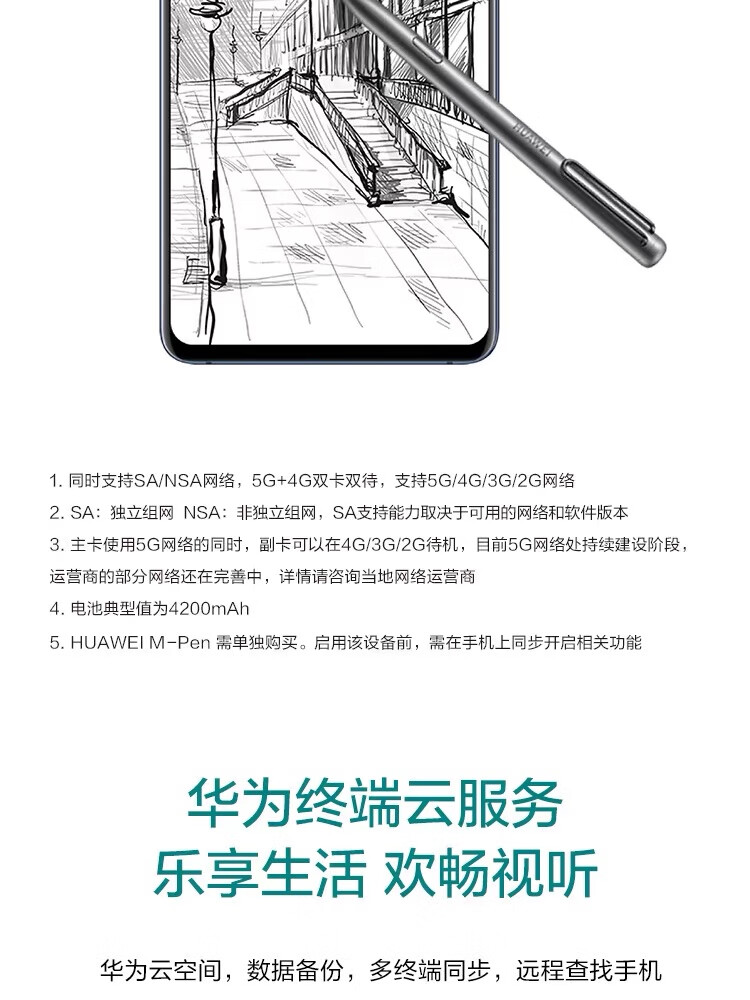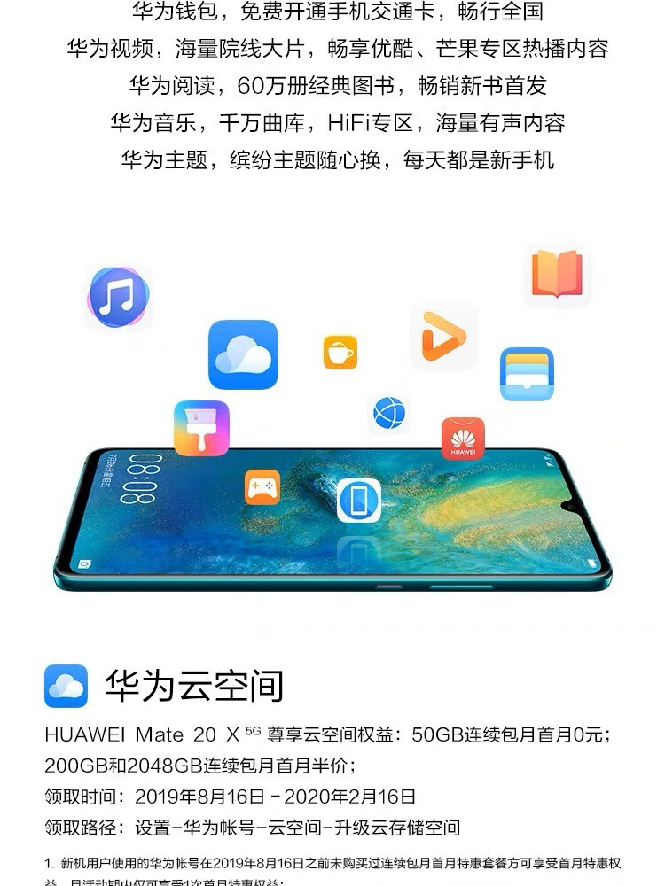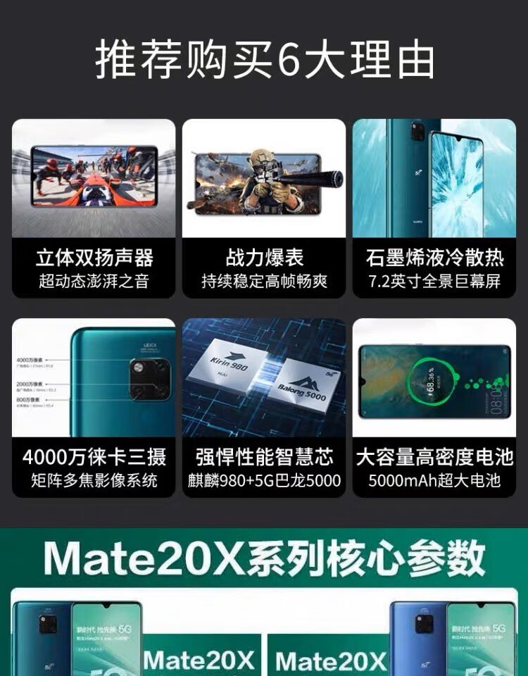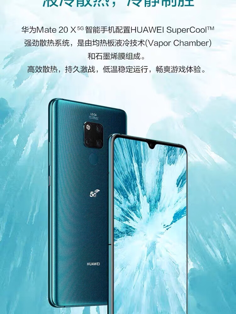 华为(HUAWEI)Huawei/华为 Mate 20 X (5G) 通商务手机7.2寸原装大屏机 翡冷翠 5G全网通 官方标配 8+256GB 中国大陆