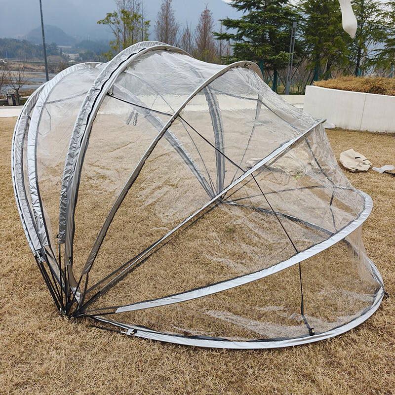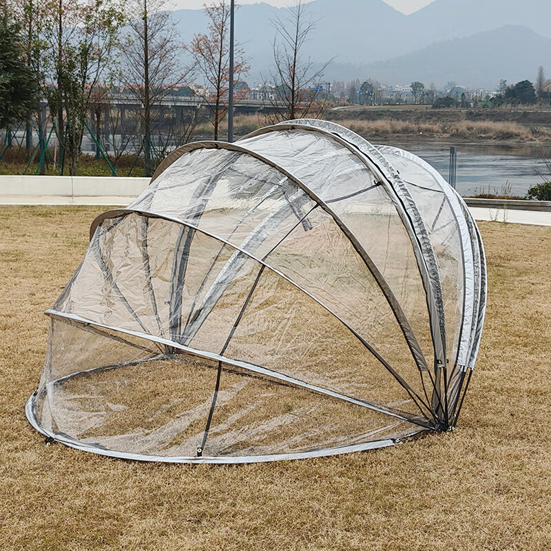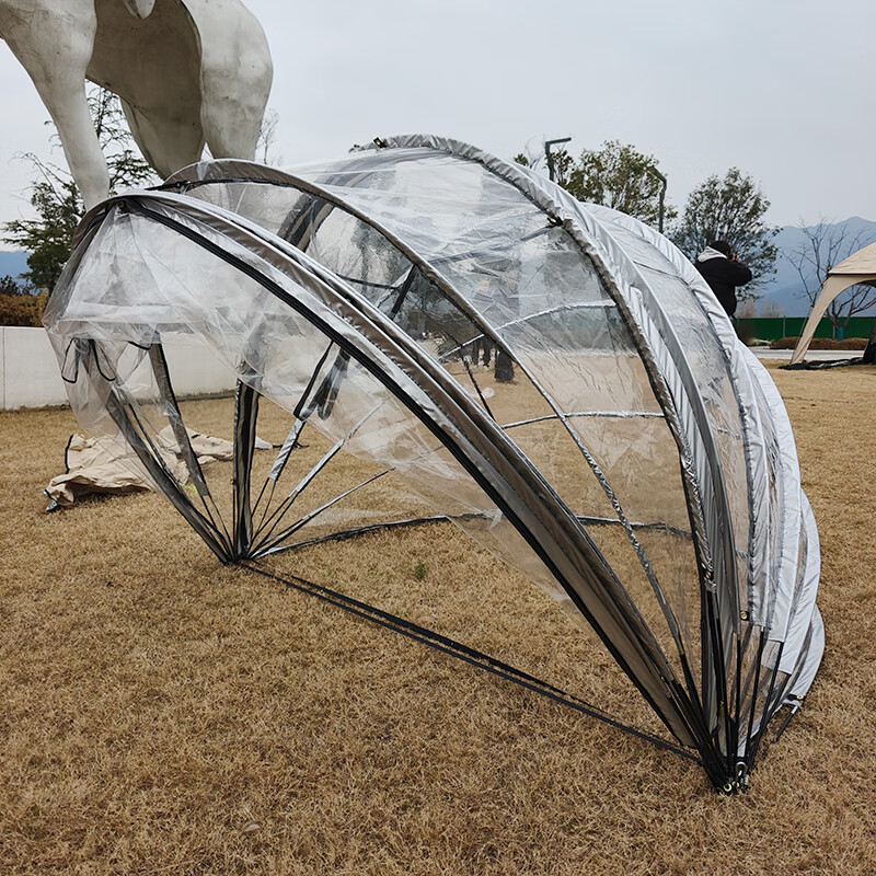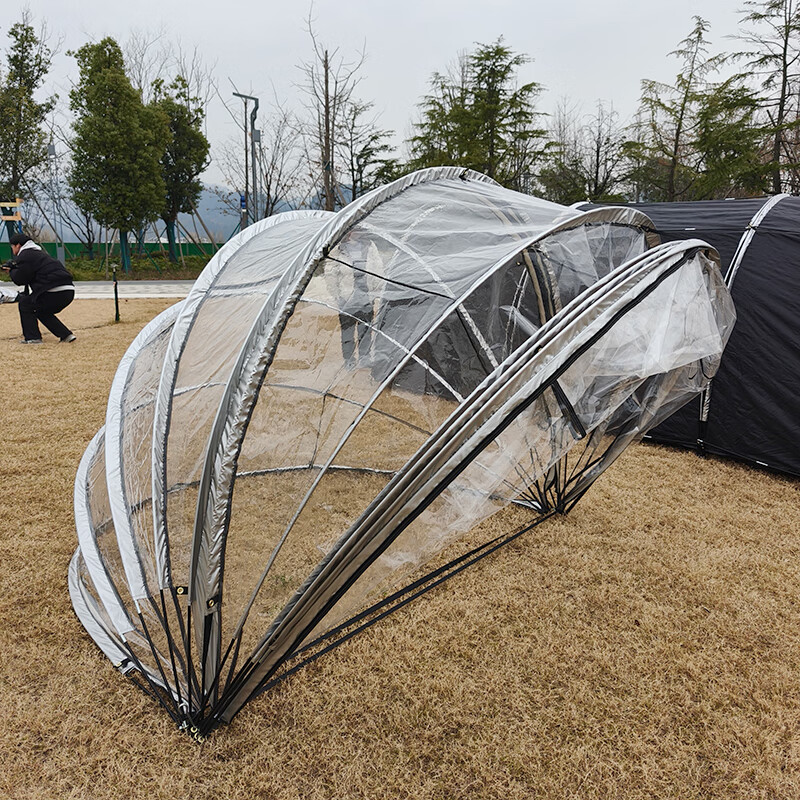 1.由2个PVC半螺壳帐篷组成,多种搭建方式,多档开合可调节