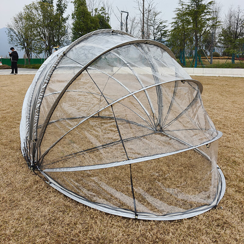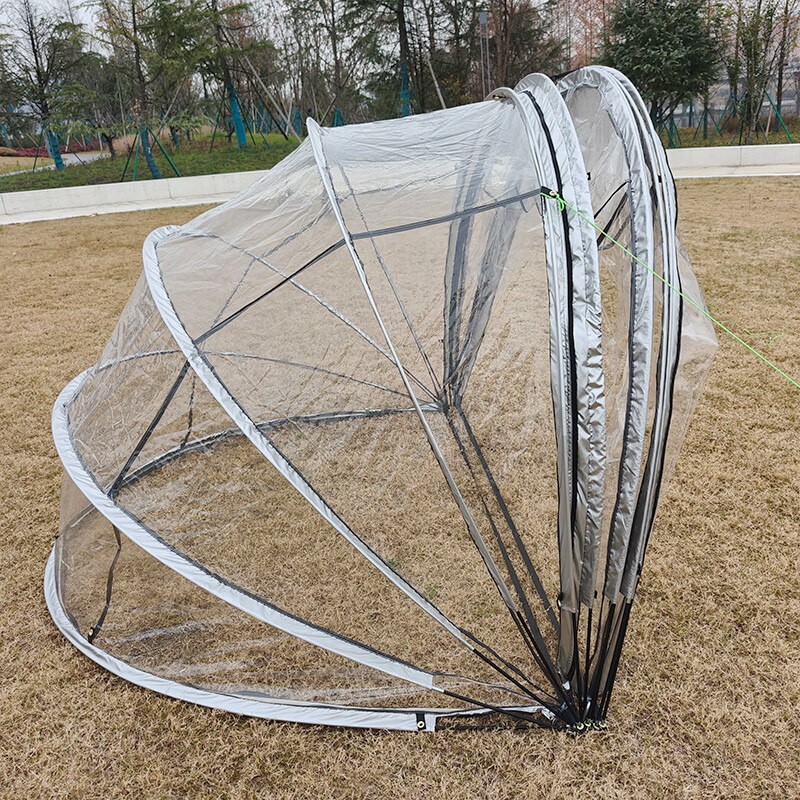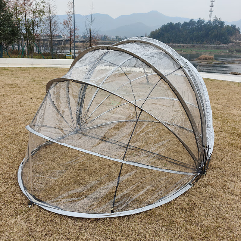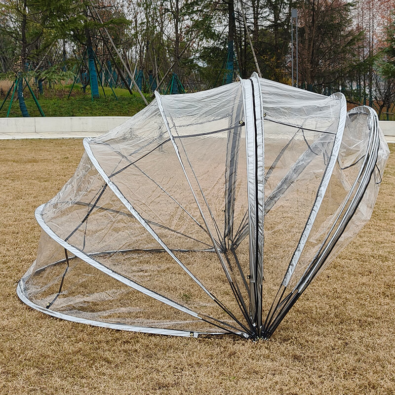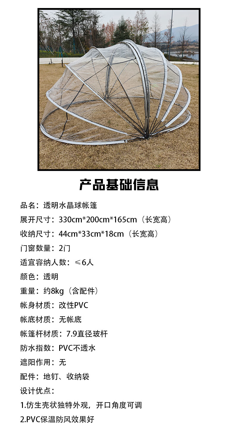 1.由2个PVC半螺壳帐篷组成,多种搭建方式,多档开合可调节