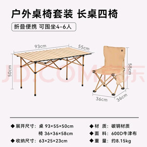 京东京造户外便携桌椅套装 长桌四椅 露营聚会野餐装备 折叠桌椅 沙石色