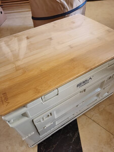 这个选了带菜板的款,既可以当桌子也可以切菜,各个翻板都有卡扣固定,上面和侧面的盖子还有插销锁扣,设计很合理。车里放这一个就够了。