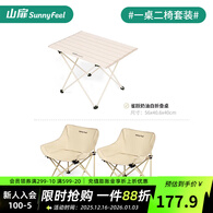 山扉山扉轻量铝合金折叠蛋卷桌碳钢露营便携式野餐装备休闲户外桌椅 一桌二椅 中号白色+卡其月亮椅*2