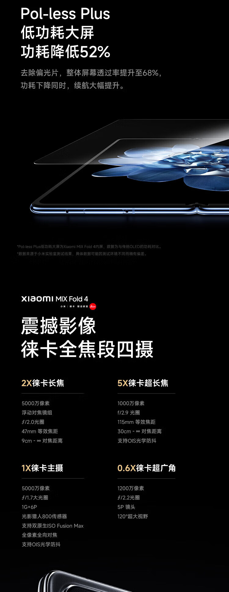 小米Xiaomi MIX Fold 4 超轻薄四曲面机身|小米龙骨转轴2.0|全碳纤维支撑架构|徕卡光学全明星四摄 黑色 16G+512G 官网标配