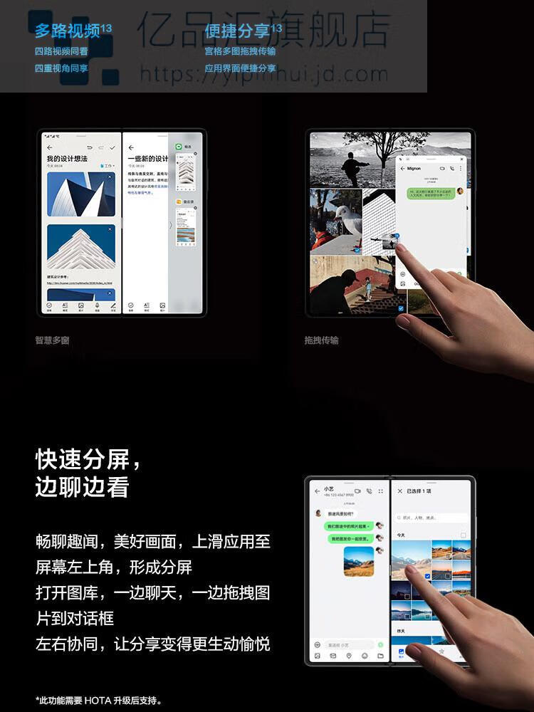 老华为粉丝,一直购买华为产品。此款手机我感觉很满意。功能强大,展开宽屏后看资料很舒适,特别是多屏同时操作,强大的下载能力(每秒可达100多M),完善的照相功能,翻译功能等等,就像一台方便的小电脑! 不足之处:耗电比较快,每天都要充二次电。(因为我使用时间较长)。二是商家忘记赠品,无线耳机等还要主动去要。