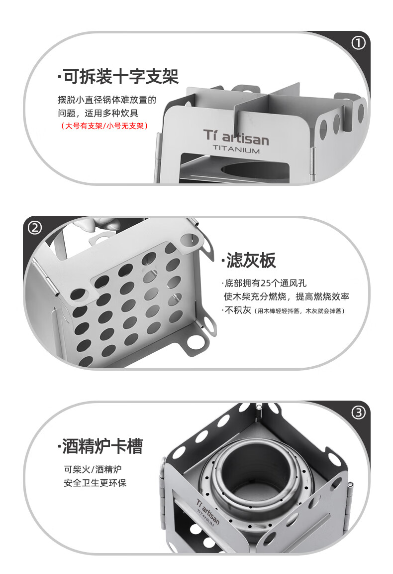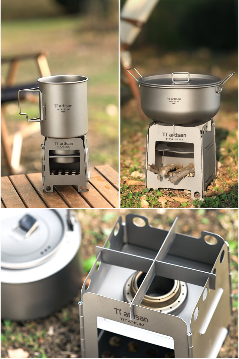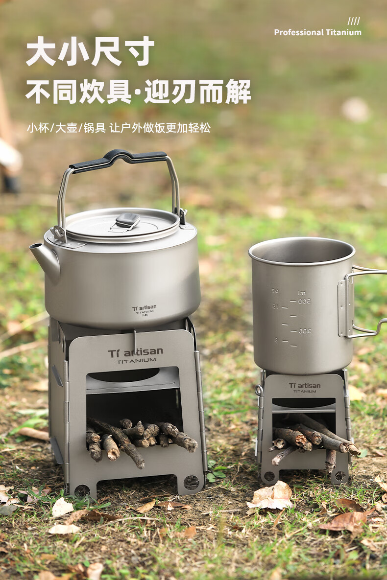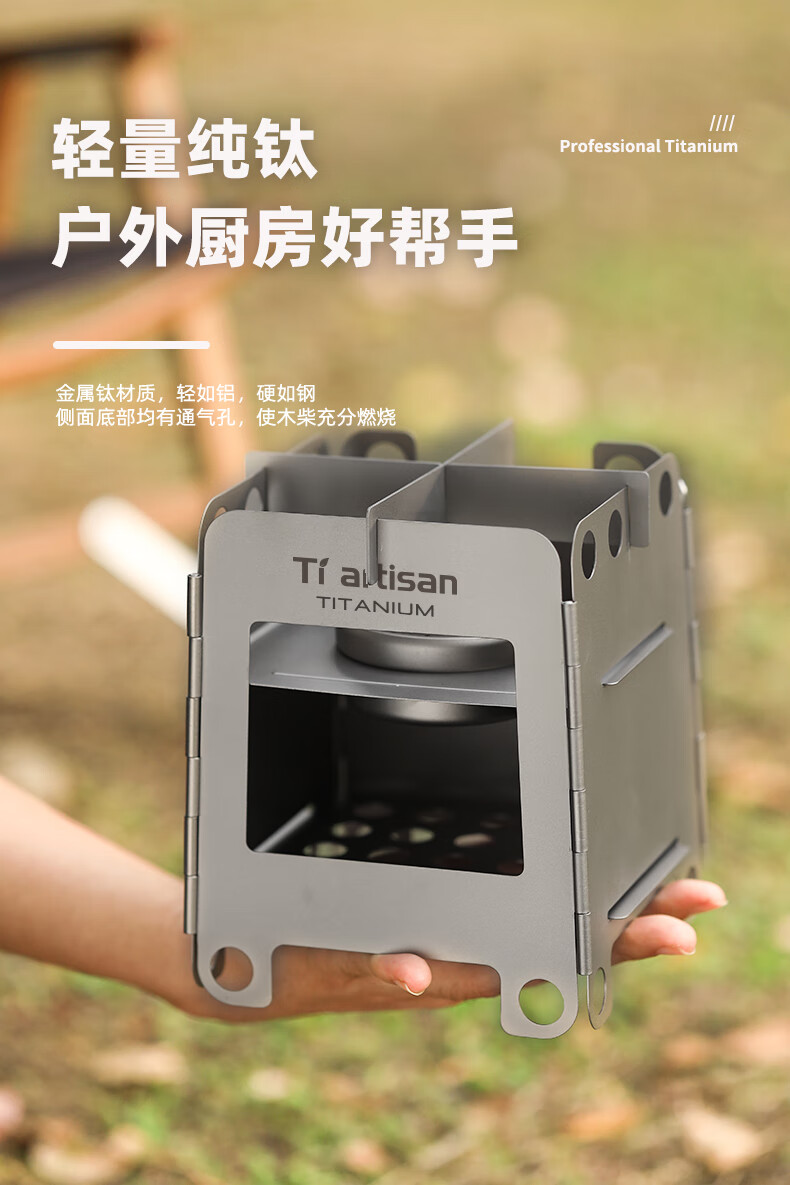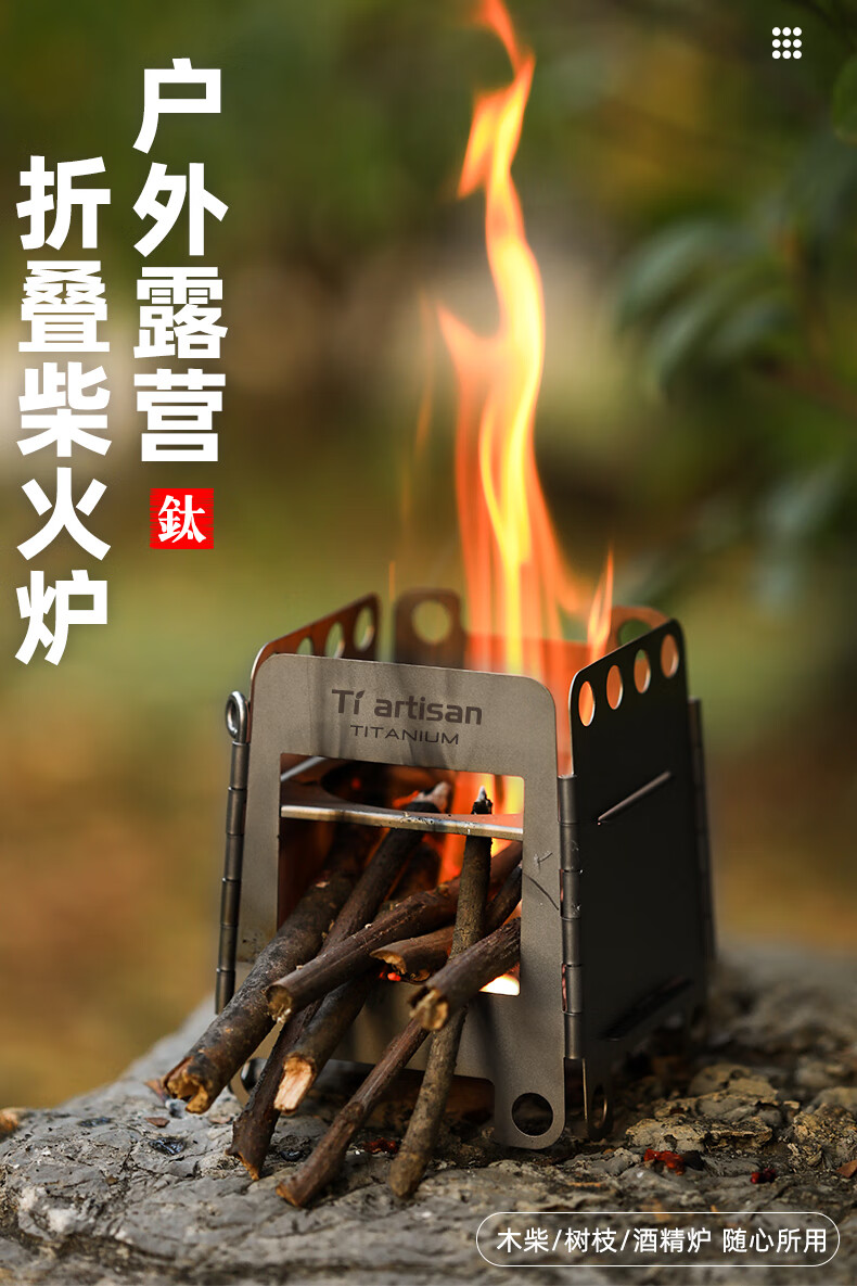 Ti artisan钛工匠户外纯钛酒精炉多功能柴火炉子野营野炊便携易收纳简易炉具 WST065-1单支架柴火炉