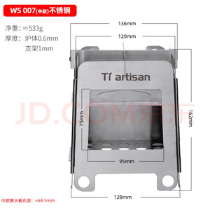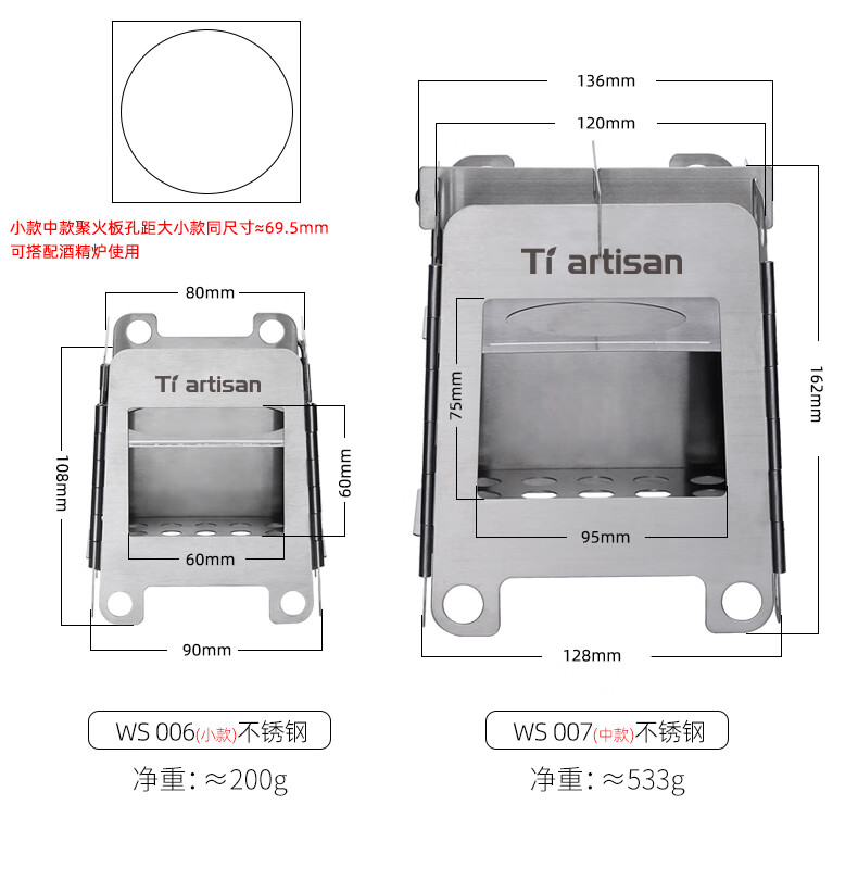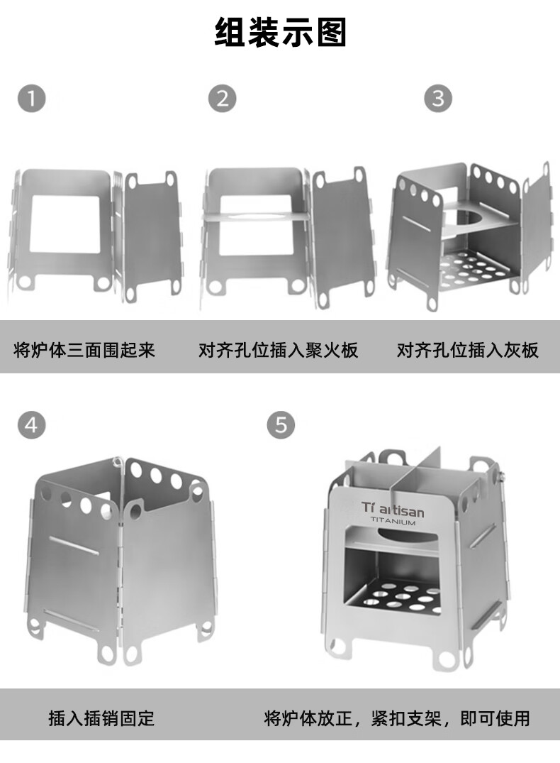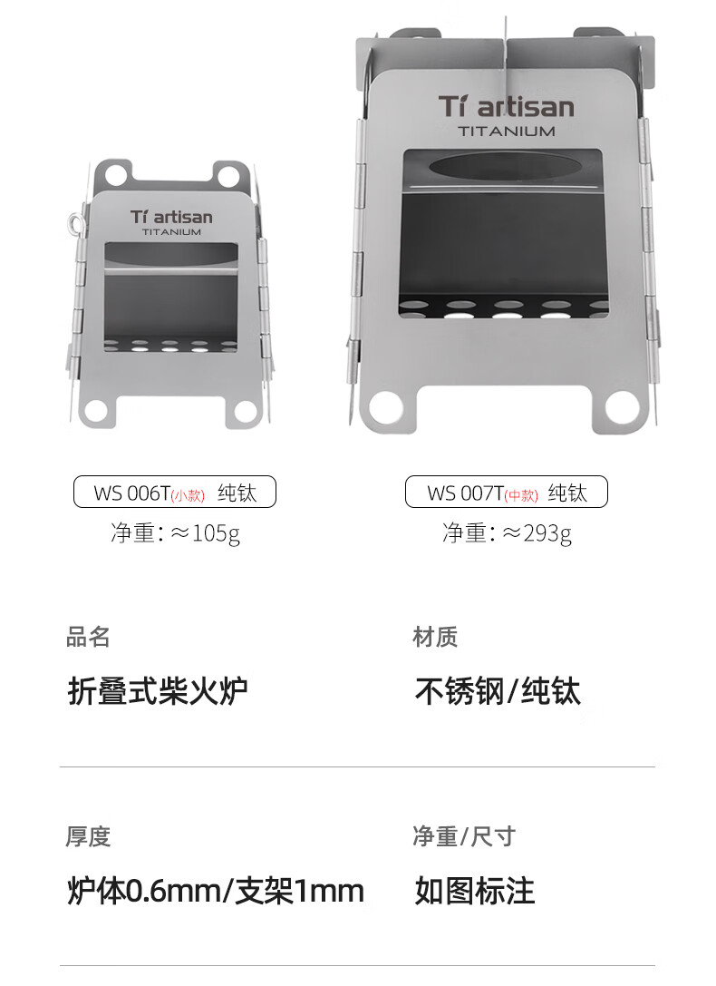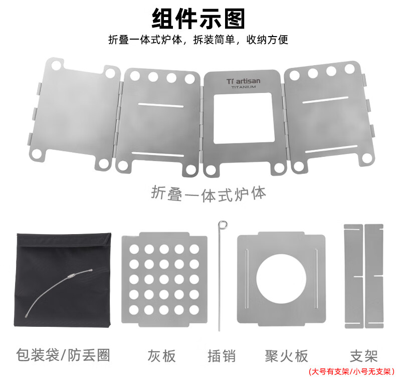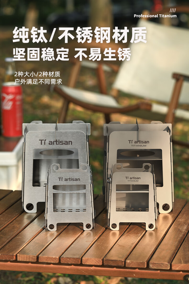 Ti artisan钛工匠户外纯钛酒精炉多功能柴火炉子野营野炊便携易收纳简易炉具 WST065-1单支架柴火炉