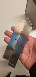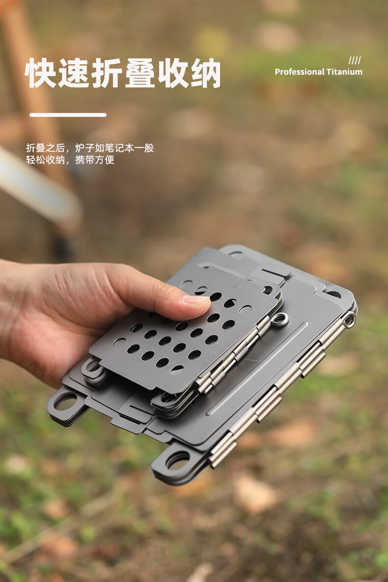 材质方面:首先材质肯定是纯钛材质了吧,纯钛材质健康轻盈,稳定性极好,就算放海里一年也不会生锈,(初中化学书上面这么介绍的),自己用火烧烤了一下,颜色变成五颜六色,五彩斑斓的,后面应该是烧过度了吧,变成白色的了。 便捷方面:材质是属于纯钛材质的金属,便携程度相比铁一类的肯定是非常轻盈的,但是美中不足就是这个架子按照的时候比较费劲,不容易按照上去,上面按照好了下面就会掉,下面按安装好了上面就会掉,需要两个同事一起按照多好角度才可以一下子安装上去,总而言之,这点美中不足,但瑕不掩瑜。 户外体验:户外体验很棒啊,很抢眼的一个小烧火炉,弄一点酒精放里面,烧起来也很有意境,总体体验下来很不错,等到五一劳动节的时候去户外搞上一番,配合酒精炉,一壶小水壶烧起来也很快,总之不会让人失望的物品,还有就是提醒大家,户外露营有瘾,呼哧呼哧买一大堆物品,幻想着哪天哪天去找个地方露营去,实际情况确实每周都被一些事情耽搁,希望大家理智看待,最好是吃饱了再来购买东西,因为研究表面人在饱腹状态是最理智的时候,这个时候再去判定事务就好了。 另外,在这家买了不少的东西,都很喜欢,店家老板也送了不少东西给我,祝老板生意兴隆。