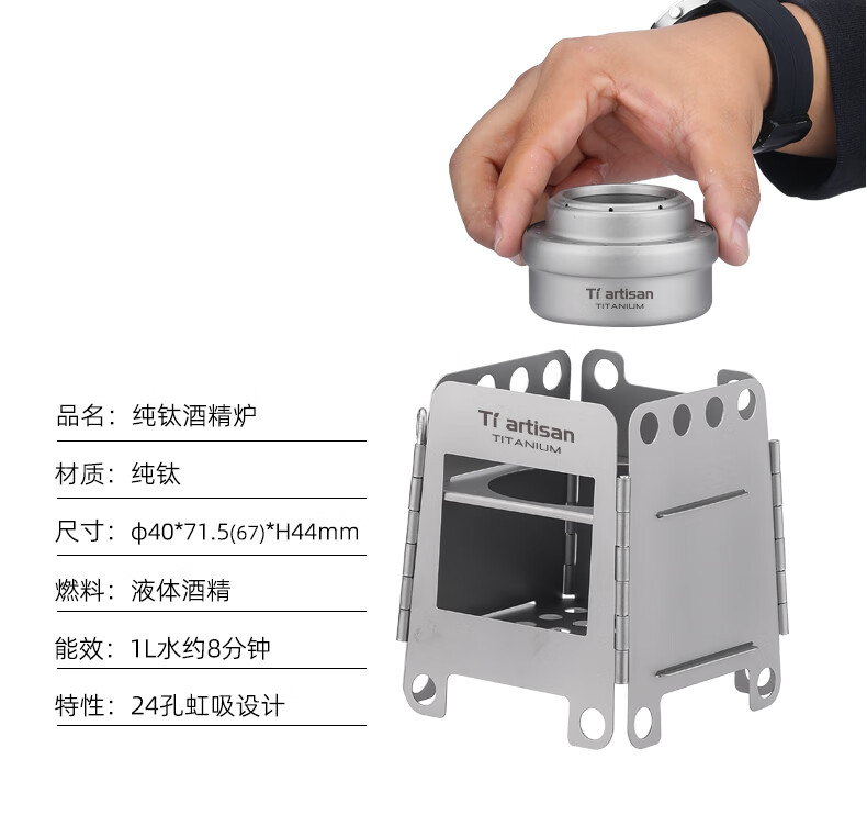 Ti artisan钛工匠户外纯钛柴火炉取信用卡折叠两用酒精炉猛火野营不锈钢炉具 纯钛柴火炉中号+纯钛酒精炉