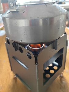 东西很小巧,携带方便,出外烧个水还行。酒精炉加入酒精后炉子的火烧得很旺,小柴火炉也很好用,拆了也方便存放,放上酒精炉很好用。