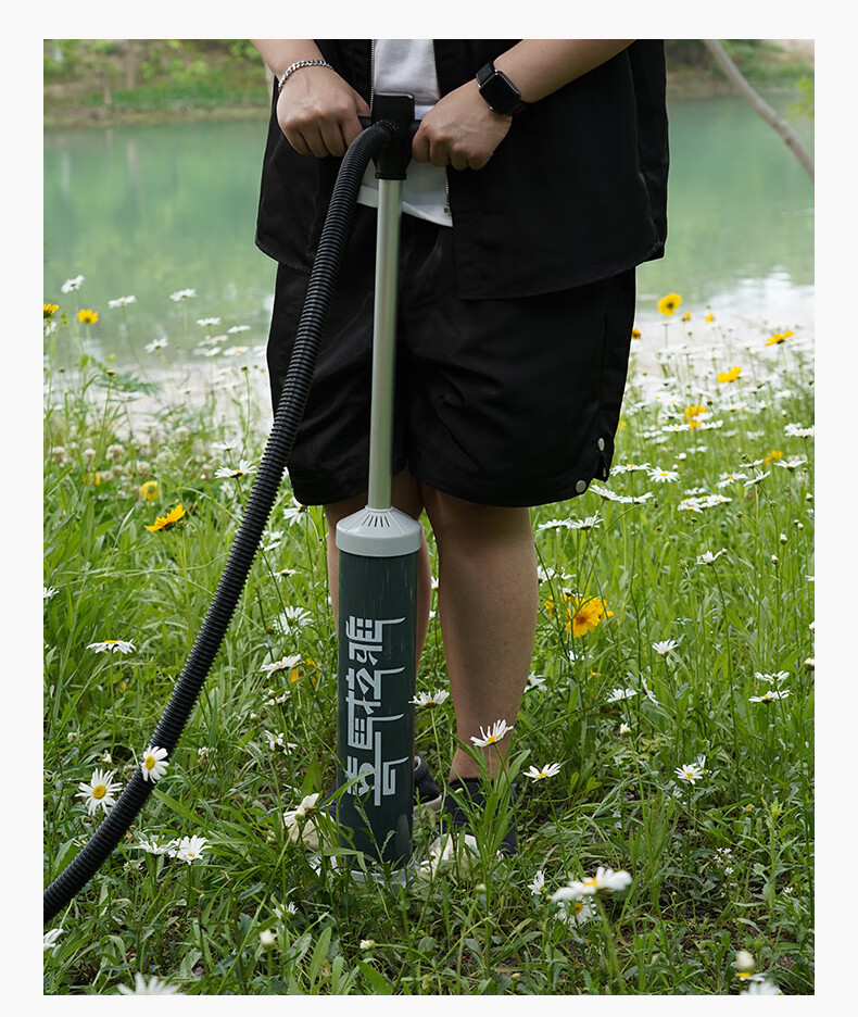 迪卡侬户外露营帐篷客厅帐野餐田园野外加厚防晒防雨卧室ODCF 黑色 _ 露营手动充气泵 10 PSI
