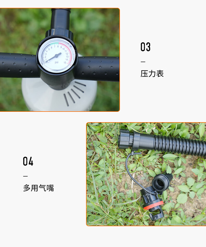 喜马拉雅帐篷打气筒气垫床冲锋舟钓鱼船充气泵户外便携高压充气 多功能高压手动打气筒