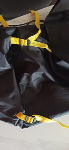 我买的大号,看着挺薄,但用起来真的不错,睡觉的毛毯卷好,连塞带攮,可以放进去,最后套上连接的套子,把两侧的束带收到最紧即可,中间还有根带子,卡扣里一卡,就可以提上了,美滴很!