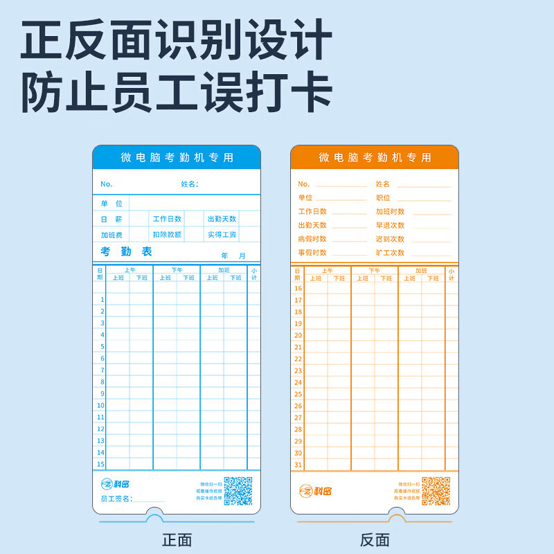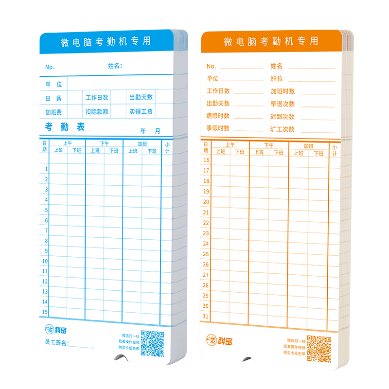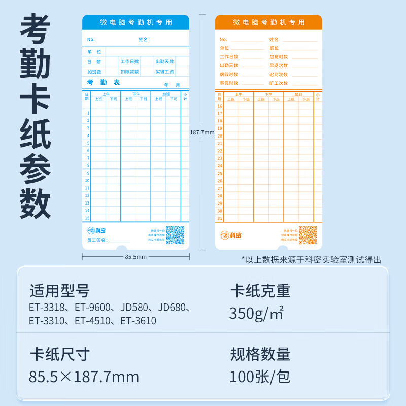 科密100张/包 350g双面考勤卡纸 打卡纸卡钟卡纸 微电脑考勤机通用