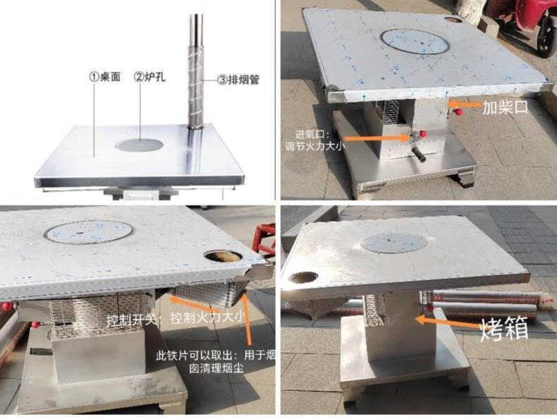 双幼农村家用回风炉气化炉 烧柴烧煤 无烟无尘桌面不锈钢 65*65不锈钢面板铁底