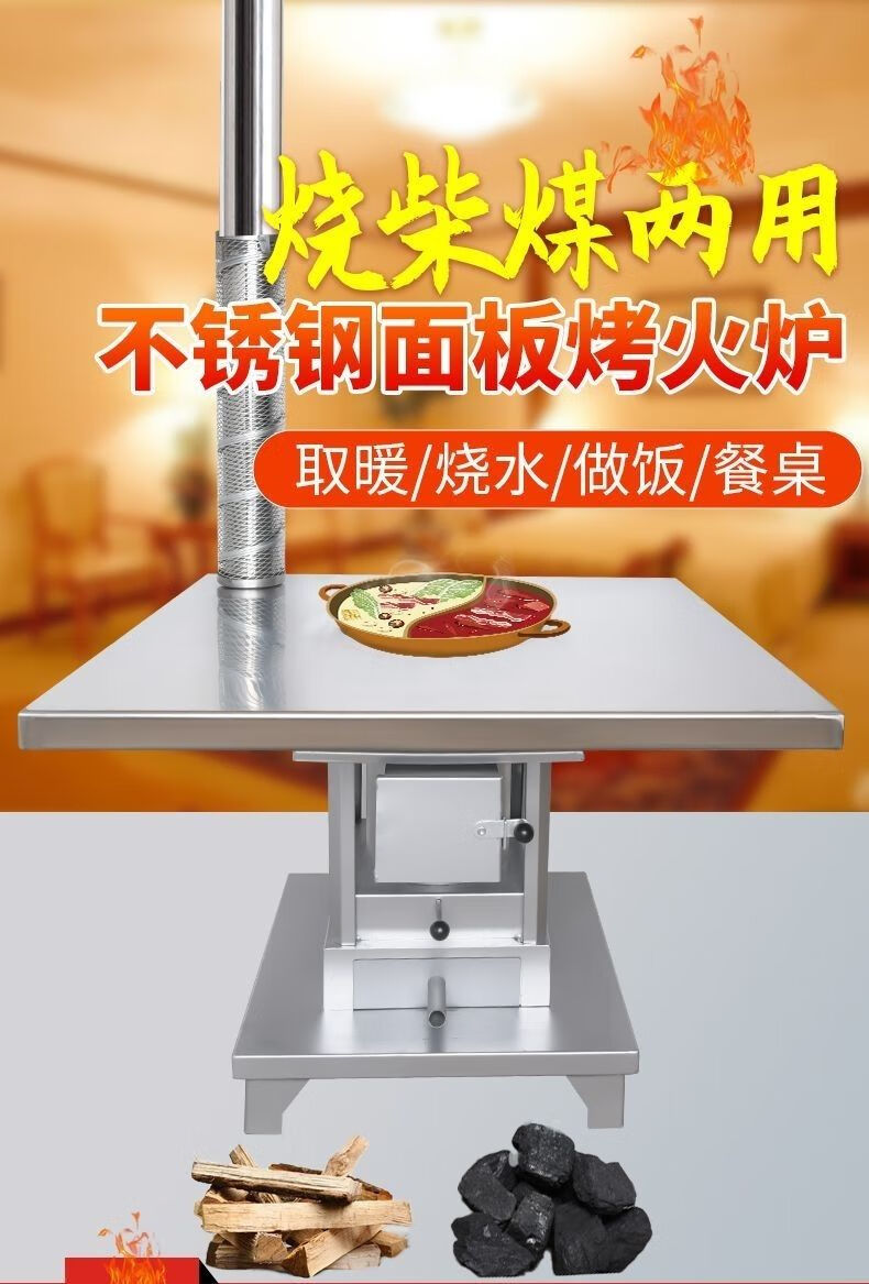 昊燃 【送货上门】加厚气化炉农村家用烤火炉柴煤两用汽化炉节能暖炉 0.8米不锈钢桌面+气化炉