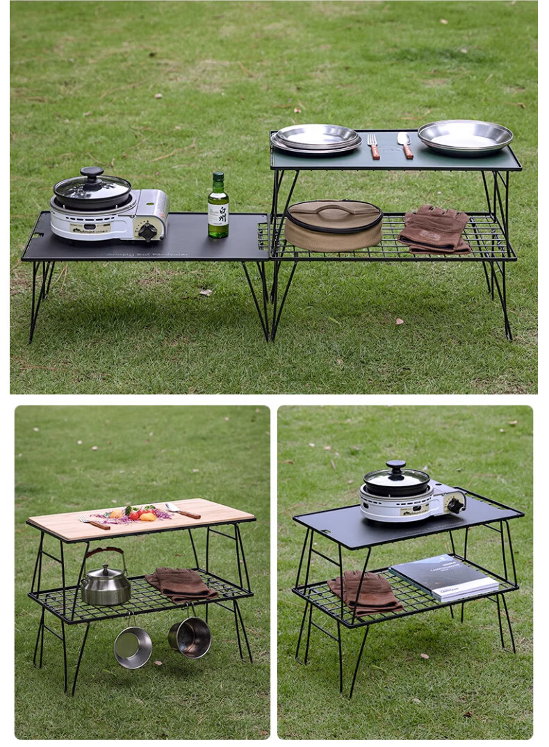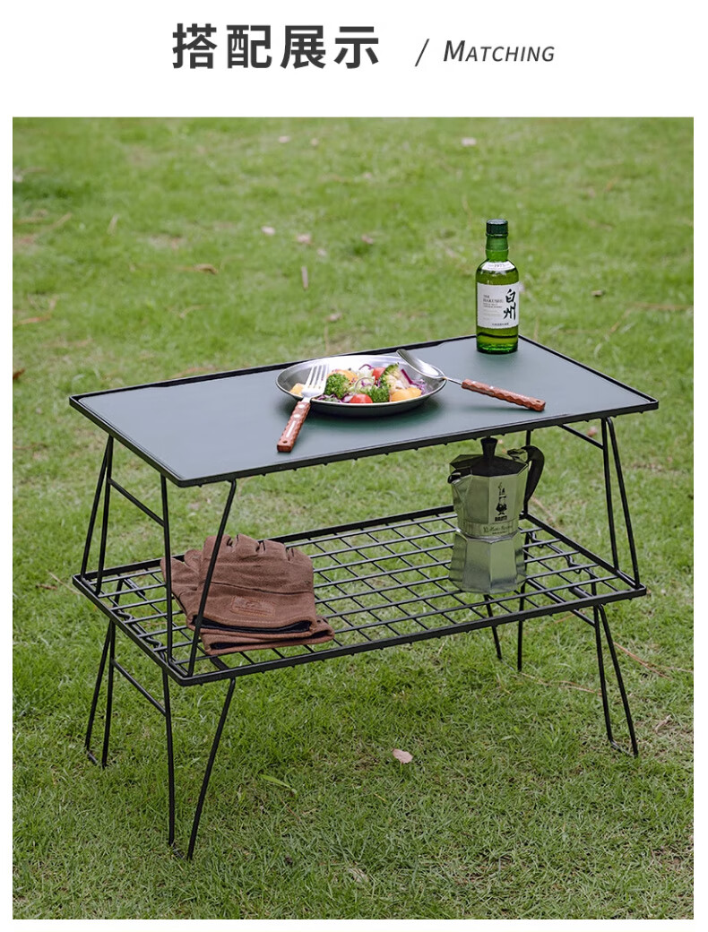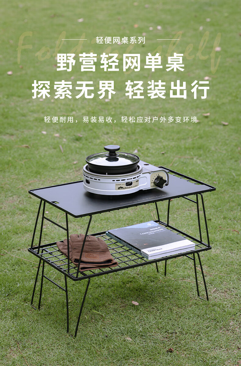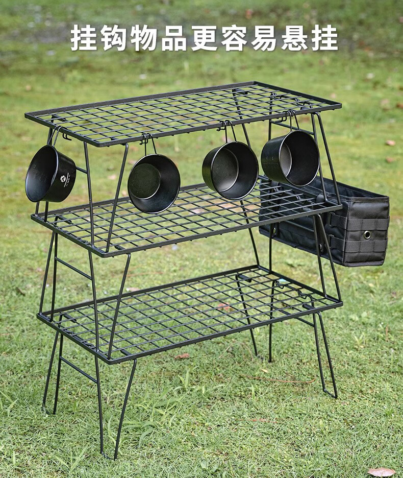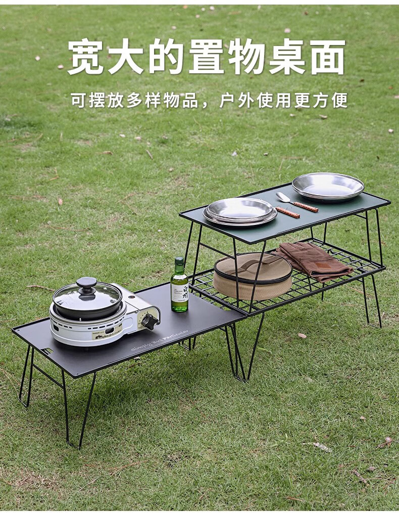 架子稳得一批 做工相当顶 相比于一代减轻了自重和厚度 卡扣也进行了升级 桌腿自带阻尼感 折叠后桌腿再也不会耷拉下来 产品整体我只能用惊艳二字来形容 是露营装备中为数不多的良心产品之一 露营可以不带桌子 但必须带上这个架子 非常实用