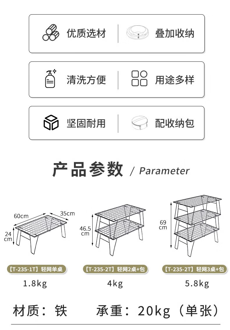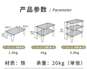 Campingmoon柯曼折叠桌T-235户外露营置物架网桌科曼 【T-235-1T】单张网桌