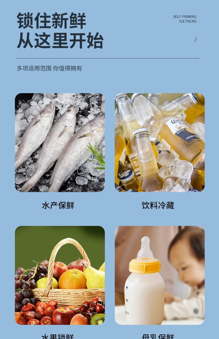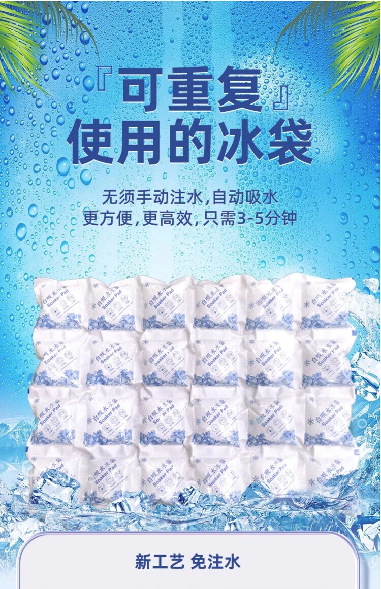 冰袋重复使用无需注水免注水自吸水冰袋航空商用食品海鲜水果保鲜 8格10张