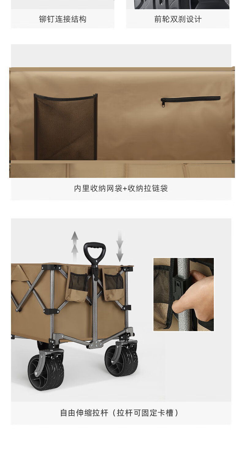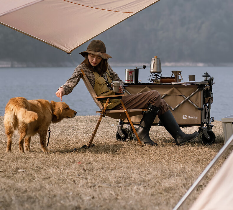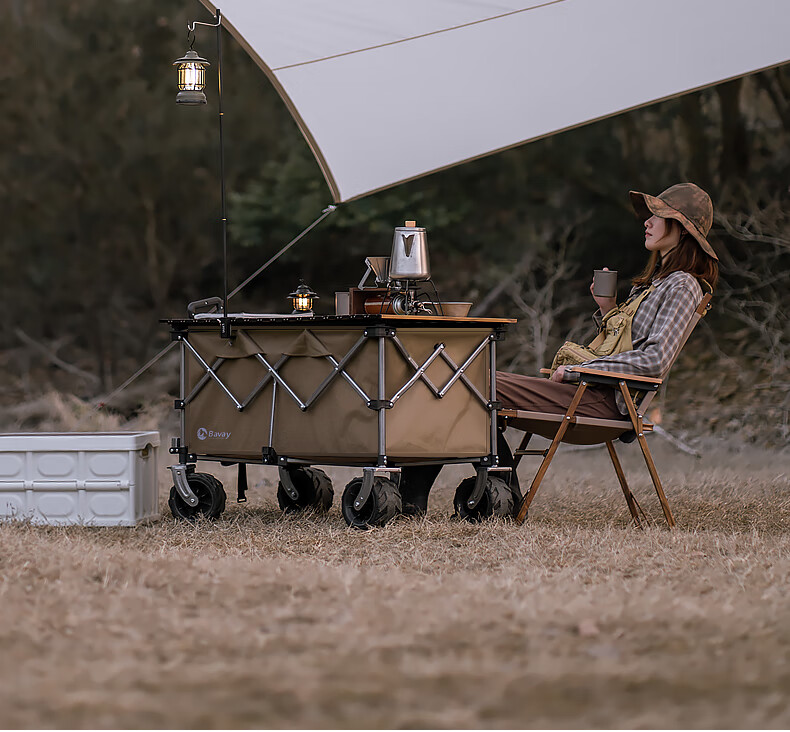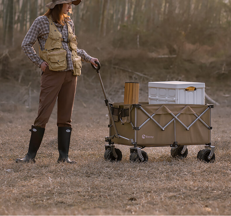 北欢 Bavay加大款户外野营拖车可折叠露营推车野餐营地小拉车S01 400L 大有可为棕色