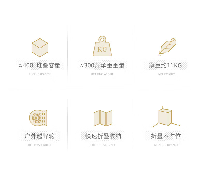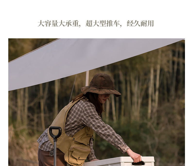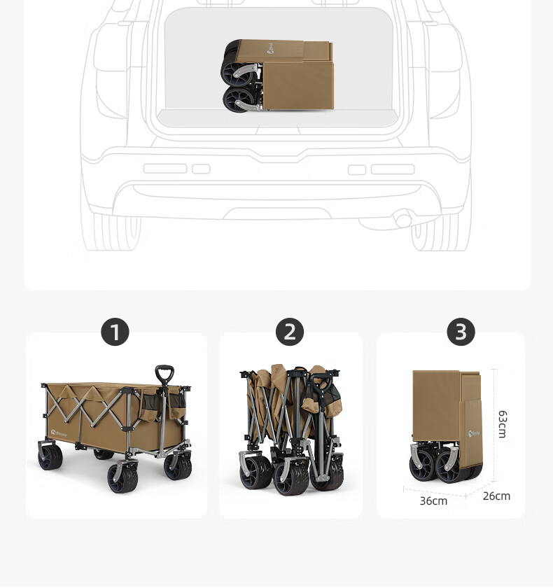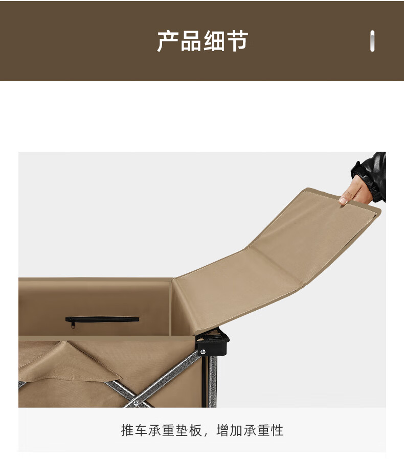 1、收纳方便 轻松放在后备箱 2、推拉很丝滑 大轮子和刹车该有的都有了 3、底部双x结构承载更好 超级能装 4、细节、做工、颜色到位 5、送的侧挂和顶棚也超级实用 总结:确实可以 不愧是永远被对标的产品 强烈推荐