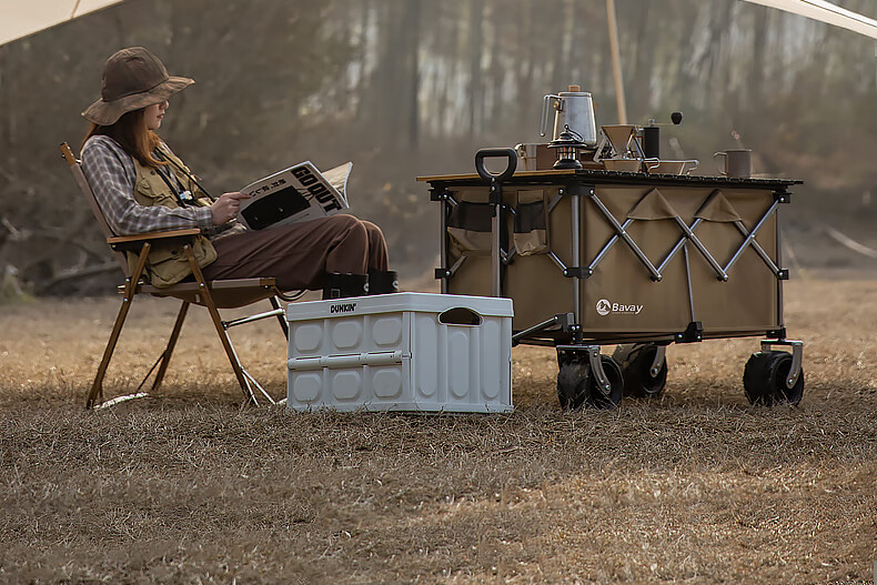 北欢 Bavay聚拢型露营车折叠手推车野营地拉车加大款S01 400L 【套餐1】餐车+2把大号椅