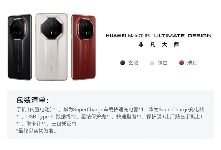 华为mate70rs 非凡大师设计 全新未拆封未激活+全国联保 新品手机 第二代昆仑玻璃 商务旗舰手机 皓白【mate70 RS】 16GB+512GB
