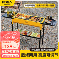 原始人烧烤炉家用烧烤架户外无烟便携式炉子折叠便携式碳烤炉架子 大号金沙黄【不锈钢烤网】9件套
