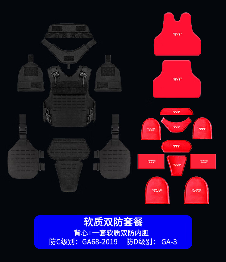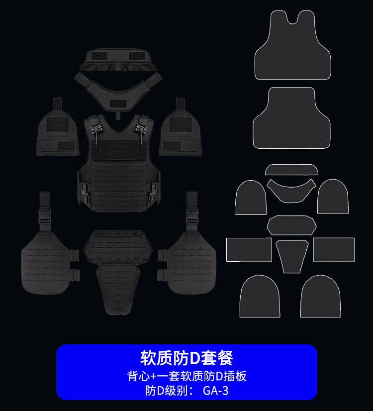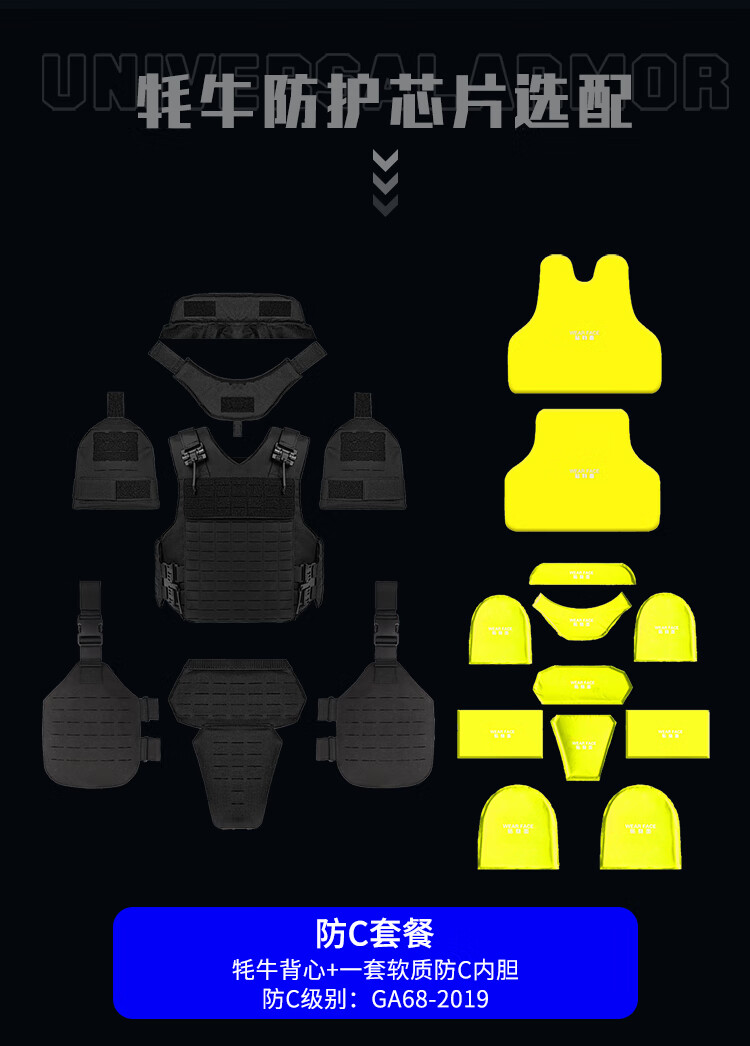 UA通用装甲牦牛阻燃黑全防护战术背心俄式重型防弹背衣防刺马甲UTA 阻燃黑+软质双防套餐