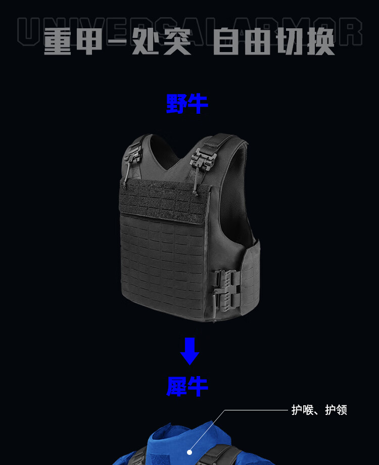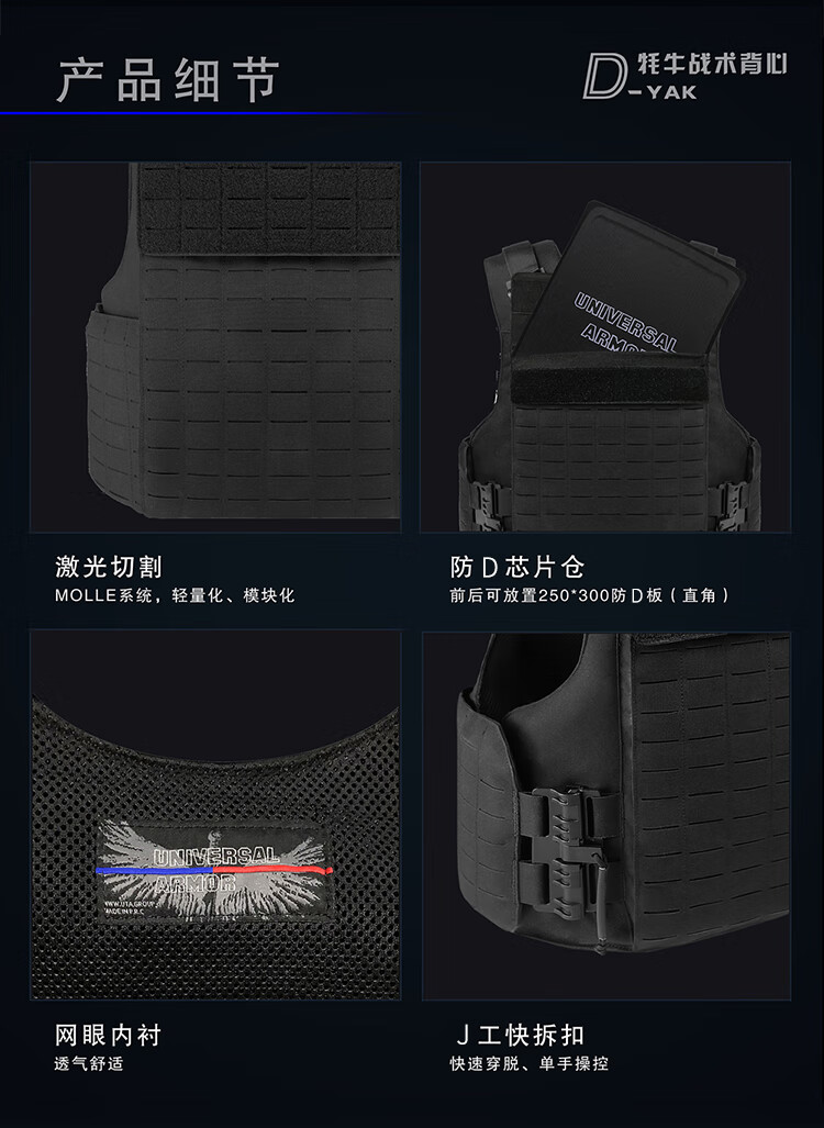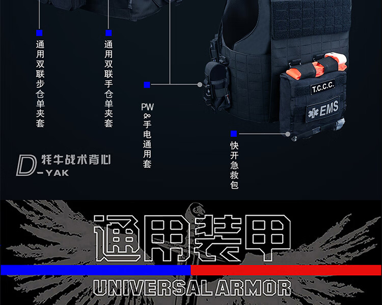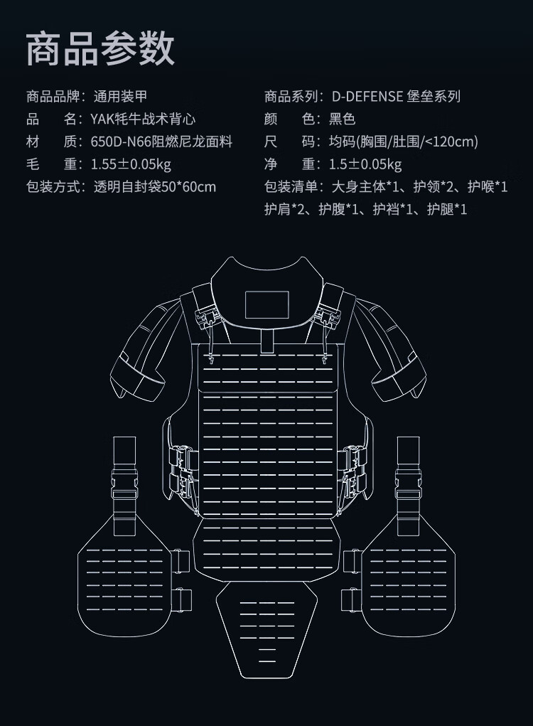 UA通用装甲犀牛阻燃黑战术背心防弹防刺重型背衣快拆马甲俄重甲UTA 牦牛阻燃黑背心(套餐联系客服)