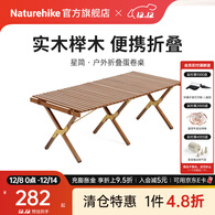 Naturehike挪客户外折叠蛋卷桌实木折叠桌野外露营野营野餐摆摊桌子夜市餐厅 榉木/黑胡桃色/大号