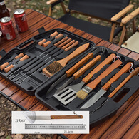 捷骜烧烤户外烧烤工具配件套装家用烤肉夹子烤串野外碳烤叉子木柄 胶盒木柄 18件套