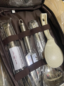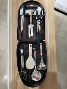 TEAEGG304不锈钢户外炊具野营厨具便携收纳包手提包露营野餐烧烤用品 浅灰色 304材质11件套裝(家庭
