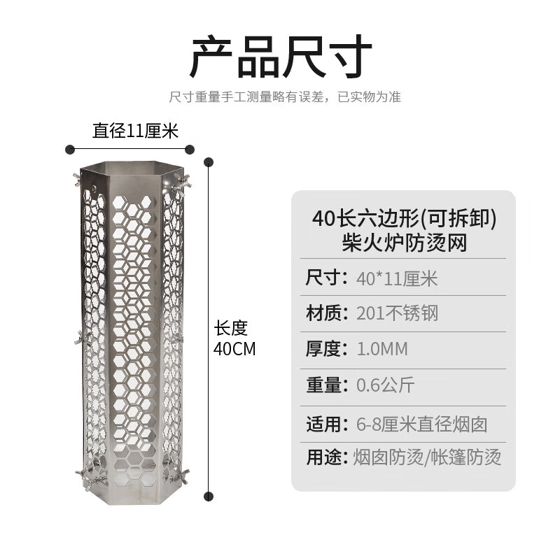 荒野猎人 WILD HUNTER荒野猎人烟囱防烫网柴火炉灶烟管防护罩不锈钢加粗加长帐篷隔热网 蜂巢大号防烫网(黑色)