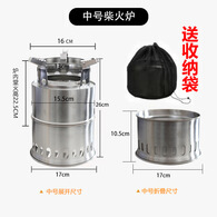 猛火不锈钢柴火炉户外便携式露营折叠木柴气化炉内胆旅行野外炉具 中号17cm柴火炉(2-3人用)