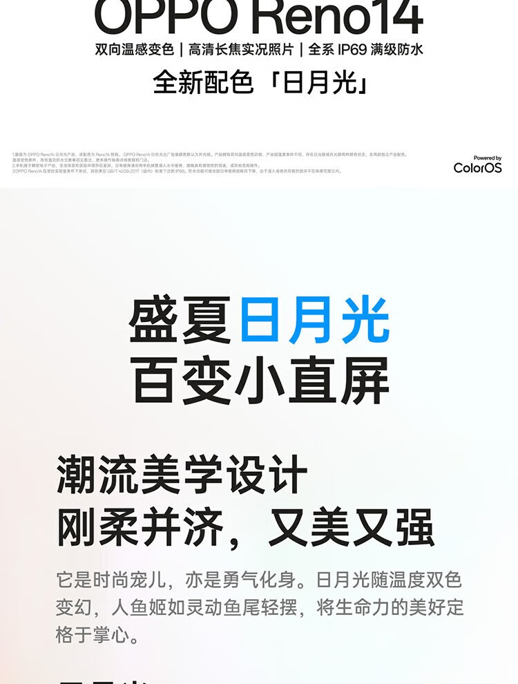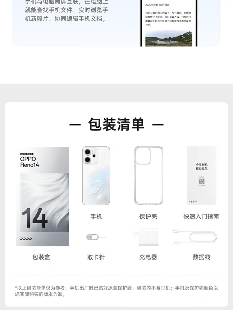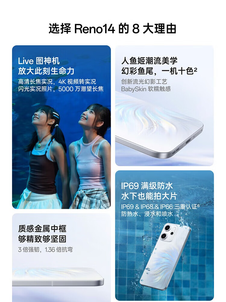 OPPOReno14高清长焦实况 全新小直屏Live图 AI拍照5G智能 学生游戏 reno14人鱼姬 16GB+512GB 原机+3C配件