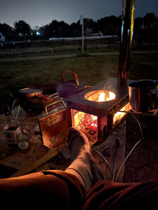 适配北境柴火炉,安装到最高一截或是第二节都可以,拉好风绳后非常稳固,加高烟囱后燃烧更充分,热值更高!