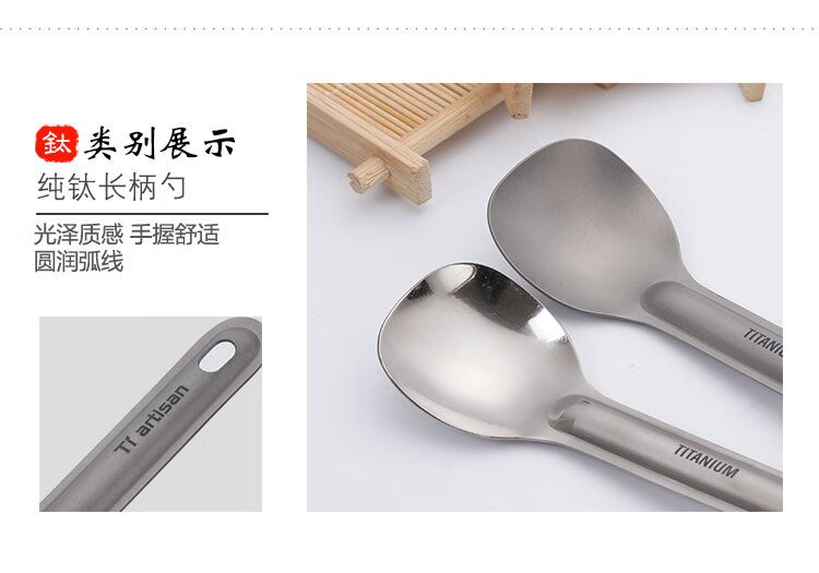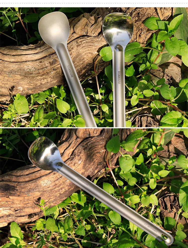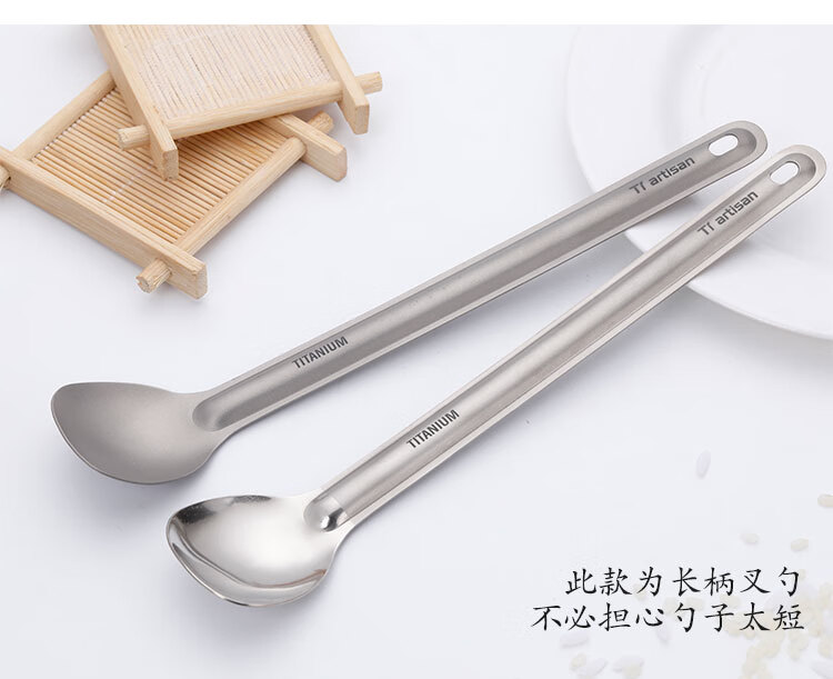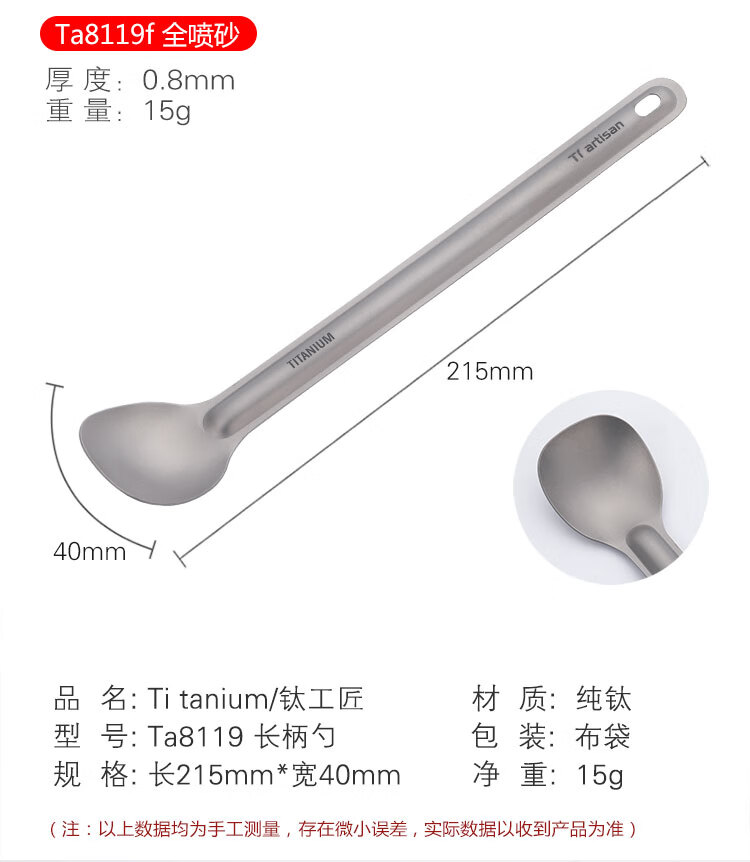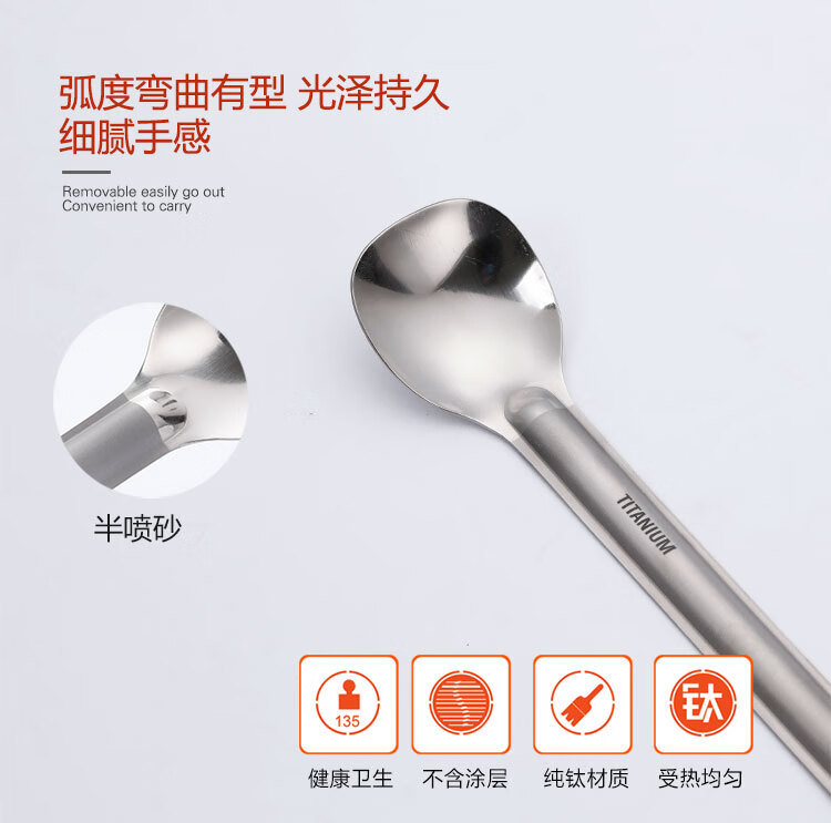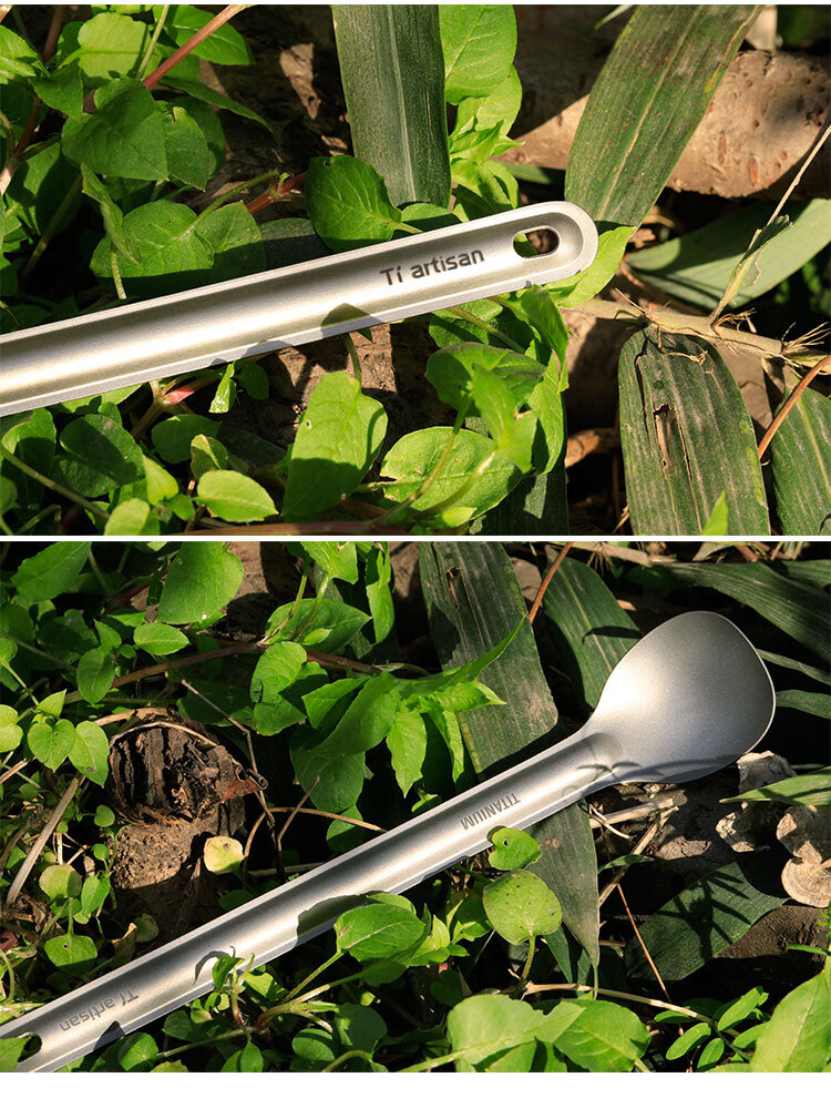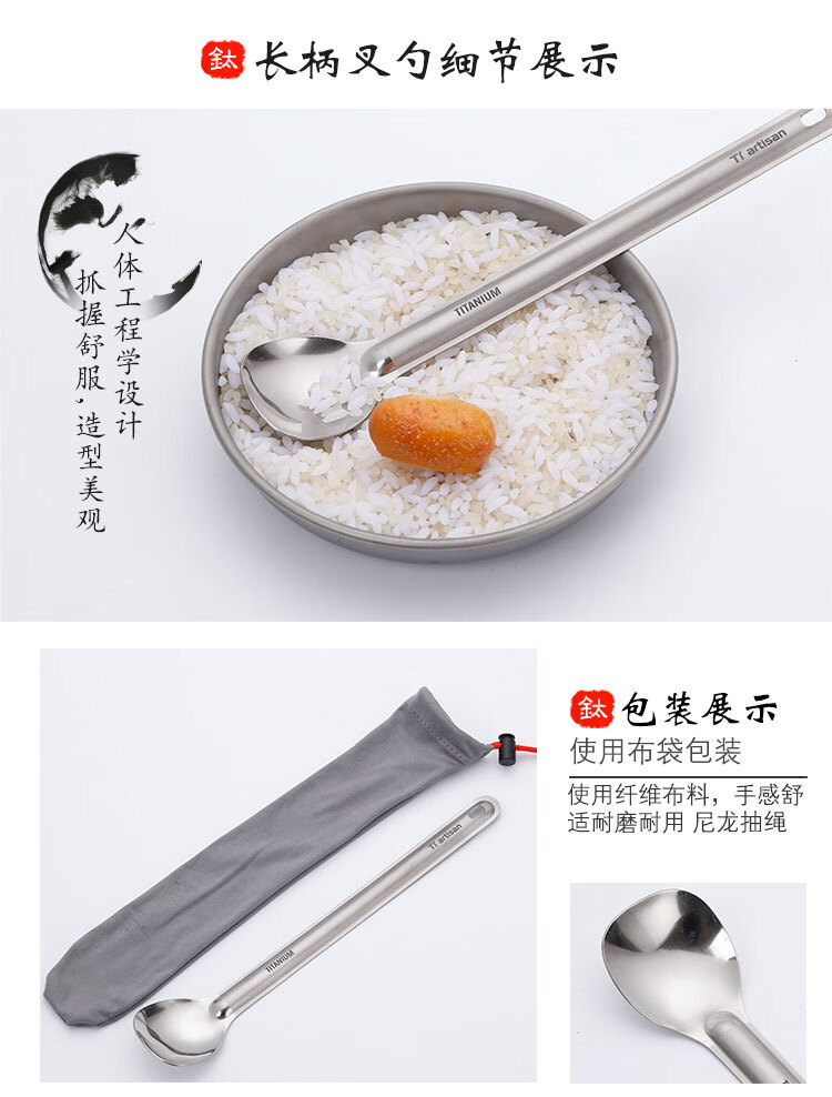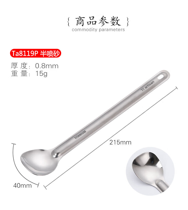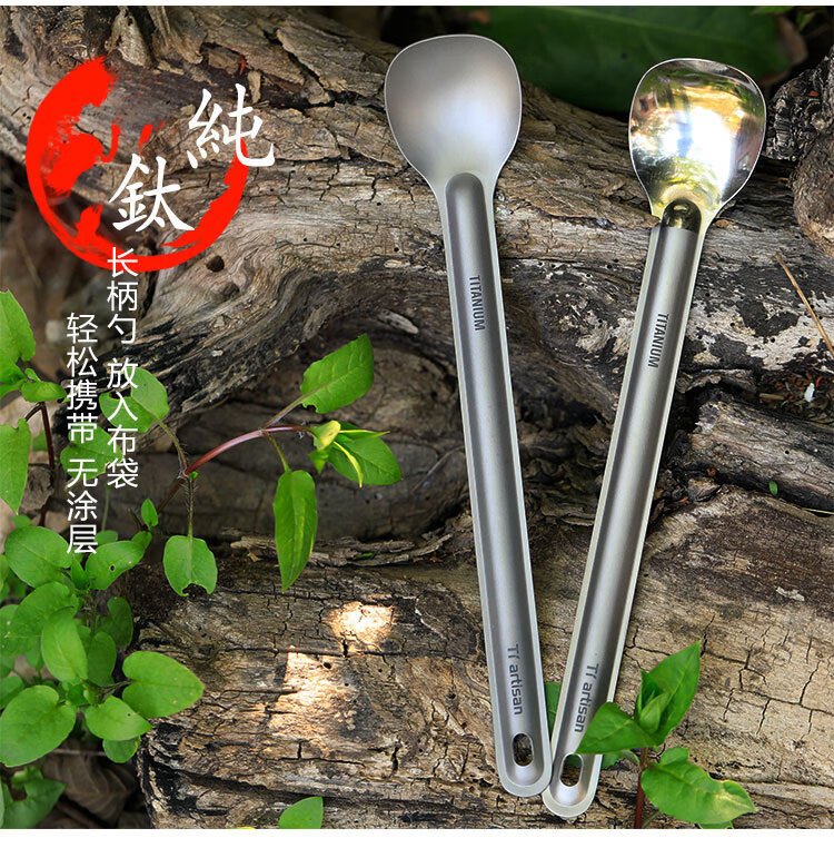 Ti artisan钛工匠户外钛餐具纯钛野营餐具长柄咖啡勺子搅拌加长金属甜品钛勺 Ta8119f长柄勺喷砂款