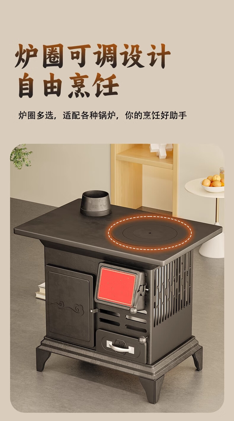 璞灶旺冬季柴火灶加厚加高农村取暖炉烧柴家用节能柴煤两用多功能回风炉 1米圆桌不锈钢(柴火炉)