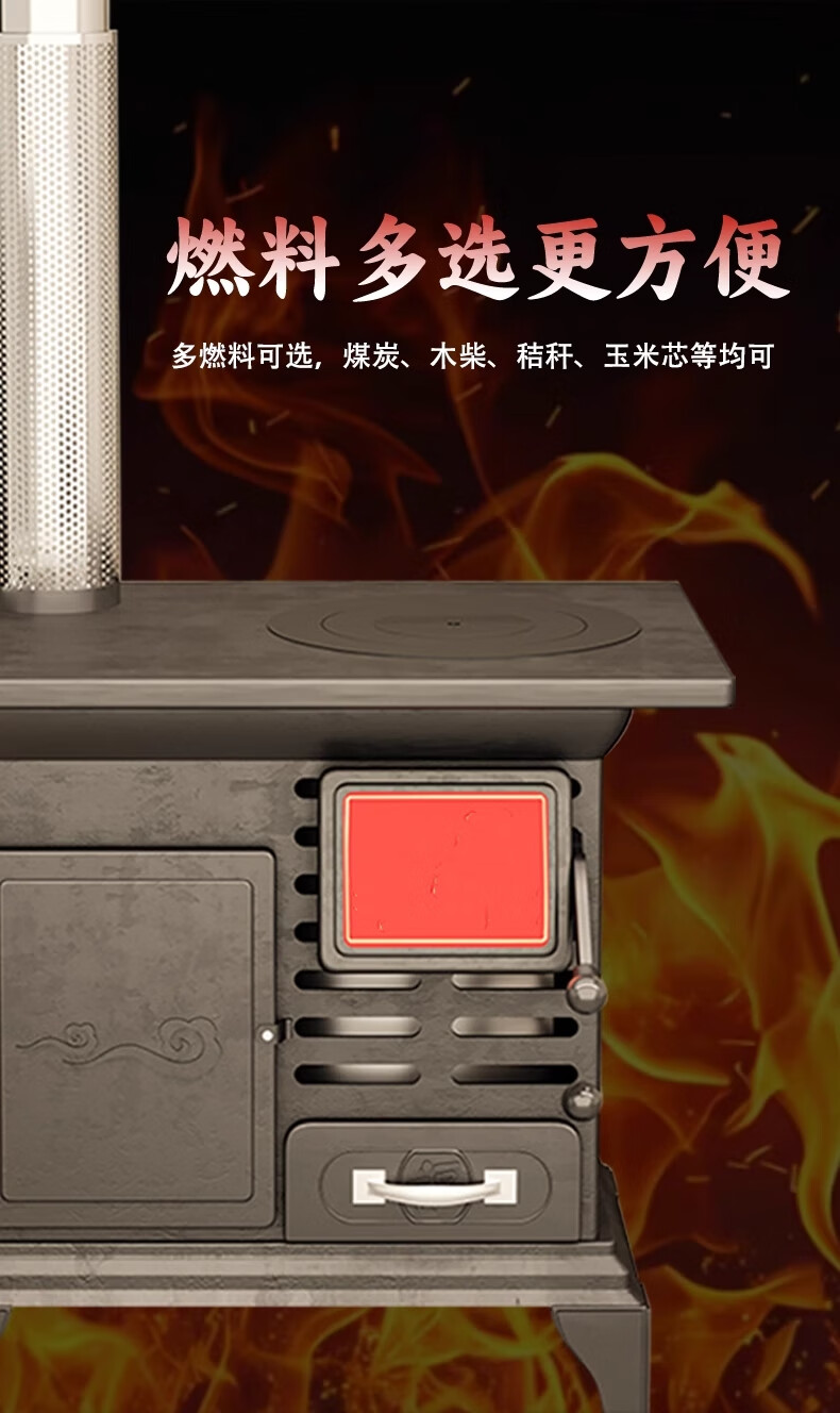 土灶旺【送货上门】气化炉家用室内烤火炉柴煤两用节能无烟柴火炉灶农村 0.8米加厚防爆桌面