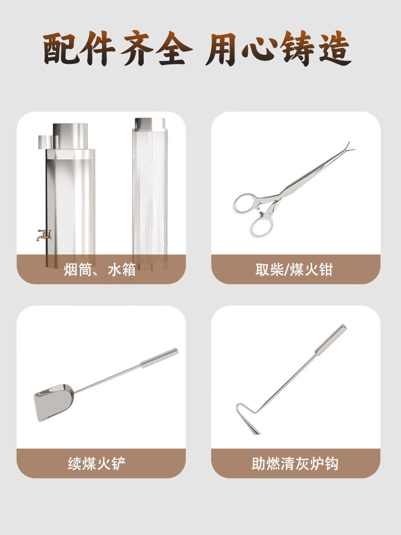 柴火取暖炉柴煤两用室内农村家用采取暖炉新型烤火炉无烟2025新型 取暖炉+2米烟筒2弯头+防烫网礼包