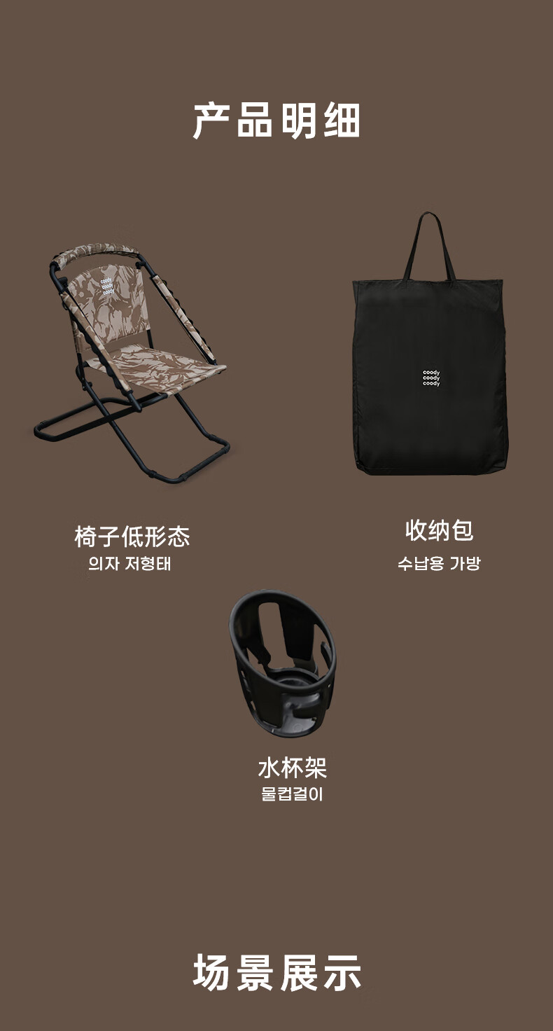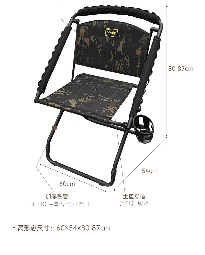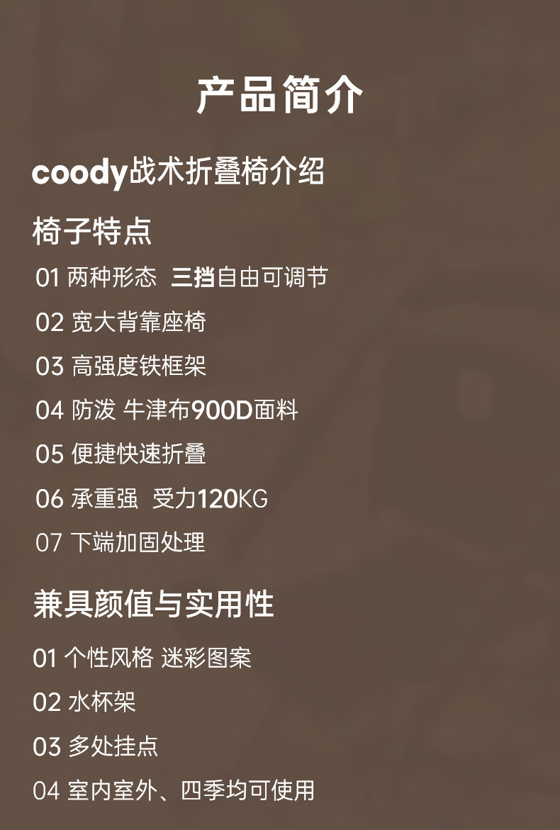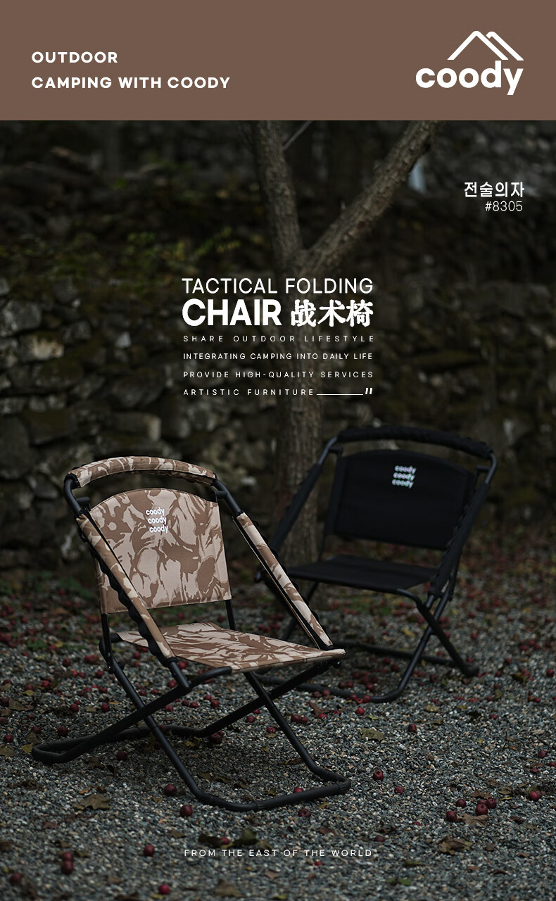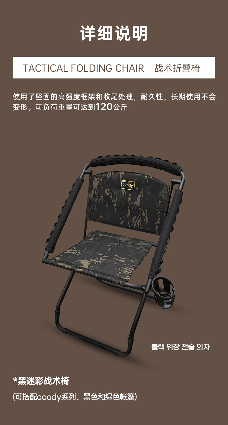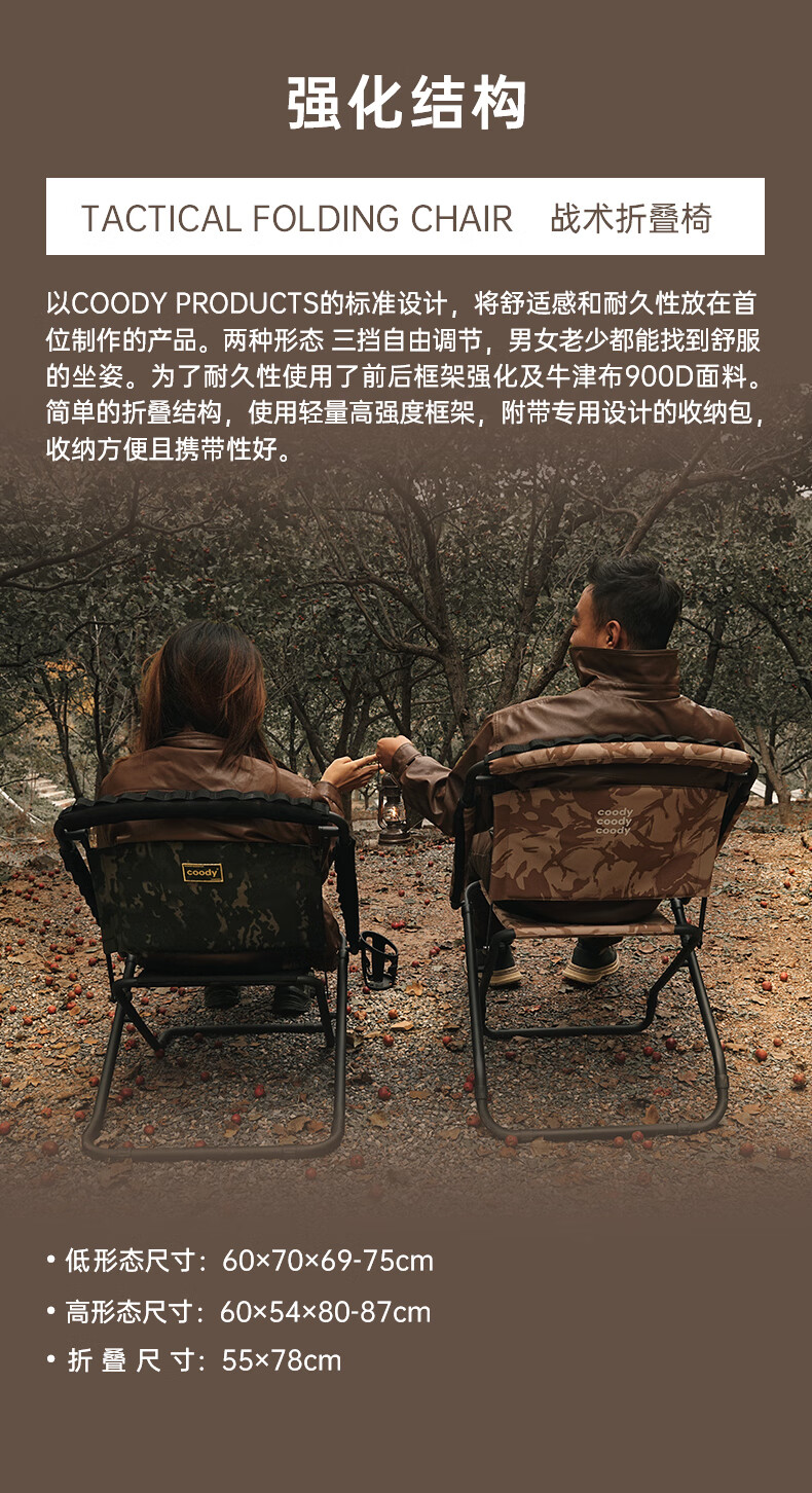 COODY酷迪Coody战术椅折叠户外钓鱼野餐用高地调节便携露营椅子 卡其色迷彩战术椅