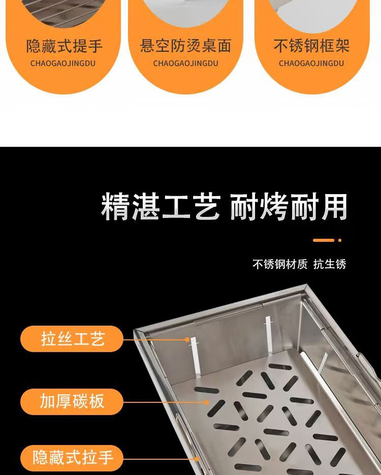 LISM户外烧烤烧烤炉家用IGT不锈钢木炭无烟便携式折叠设计3秒收起烤肉 IGT烧烤炉加厚不锈钢折叠款