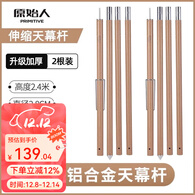 原始人铝合金天幕杆加粗加厚天幕支撑杆固定杆铝杆户外露营支架杆 木纹(2根装)