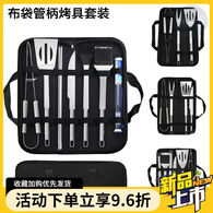 MDUG进口不锈钢烧烤工具套装户外露营用16英寸烧烤配件铲叉夹刷子工具 16英寸烧烤工具 9件套