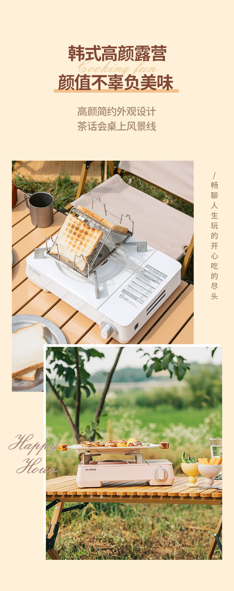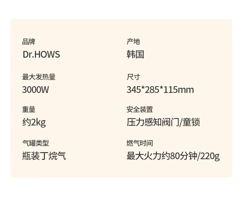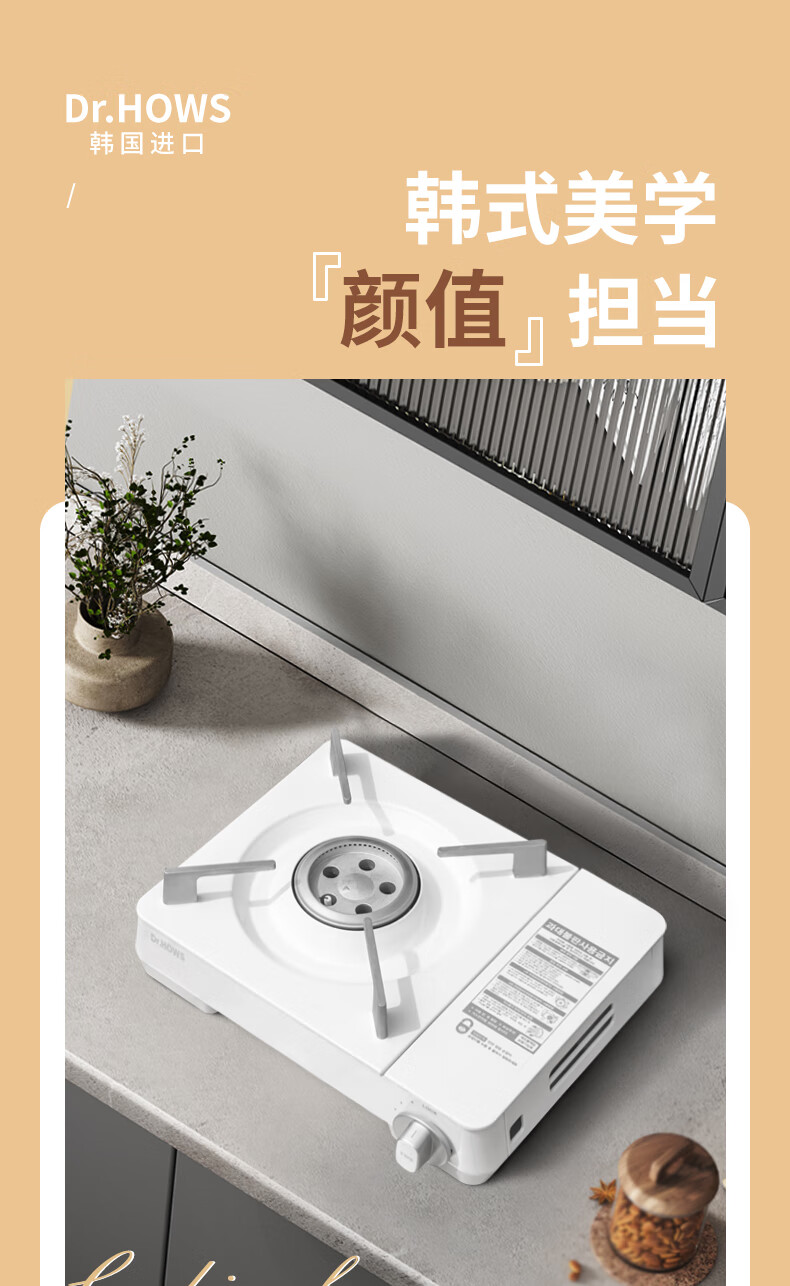 Dr.HOWS韩国进口移动卡式炉户外便携式炉具露营野餐野炊野营家用卡斯炉 珍珠白(含手提箱)+6瓶气