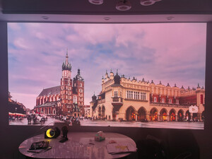 画面表现非常好!4k超清晰,照片是晚上拍的,实际白天也能用。 图片是手机拍的,颜色有些不准,实际颜色非常真实自然。 手机电脑都能轻松投屏,幸福感大大提升