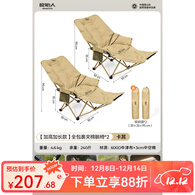 原始人户外折叠躺椅便携式露营椅子野餐月亮椅野营钓鱼沙滩办公室午休椅 卡其x2-三档调节 面软舒适