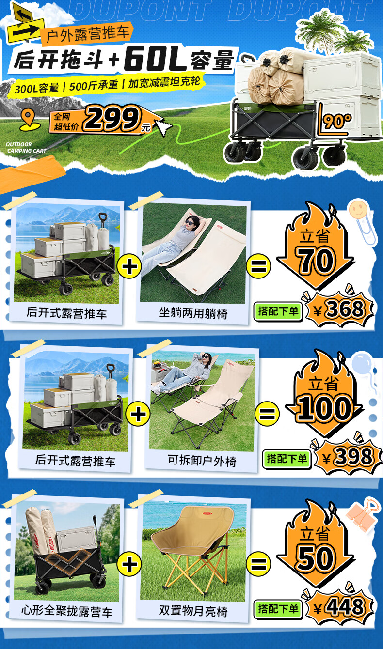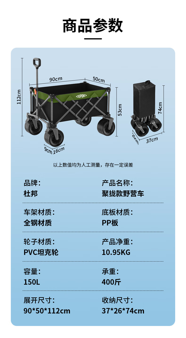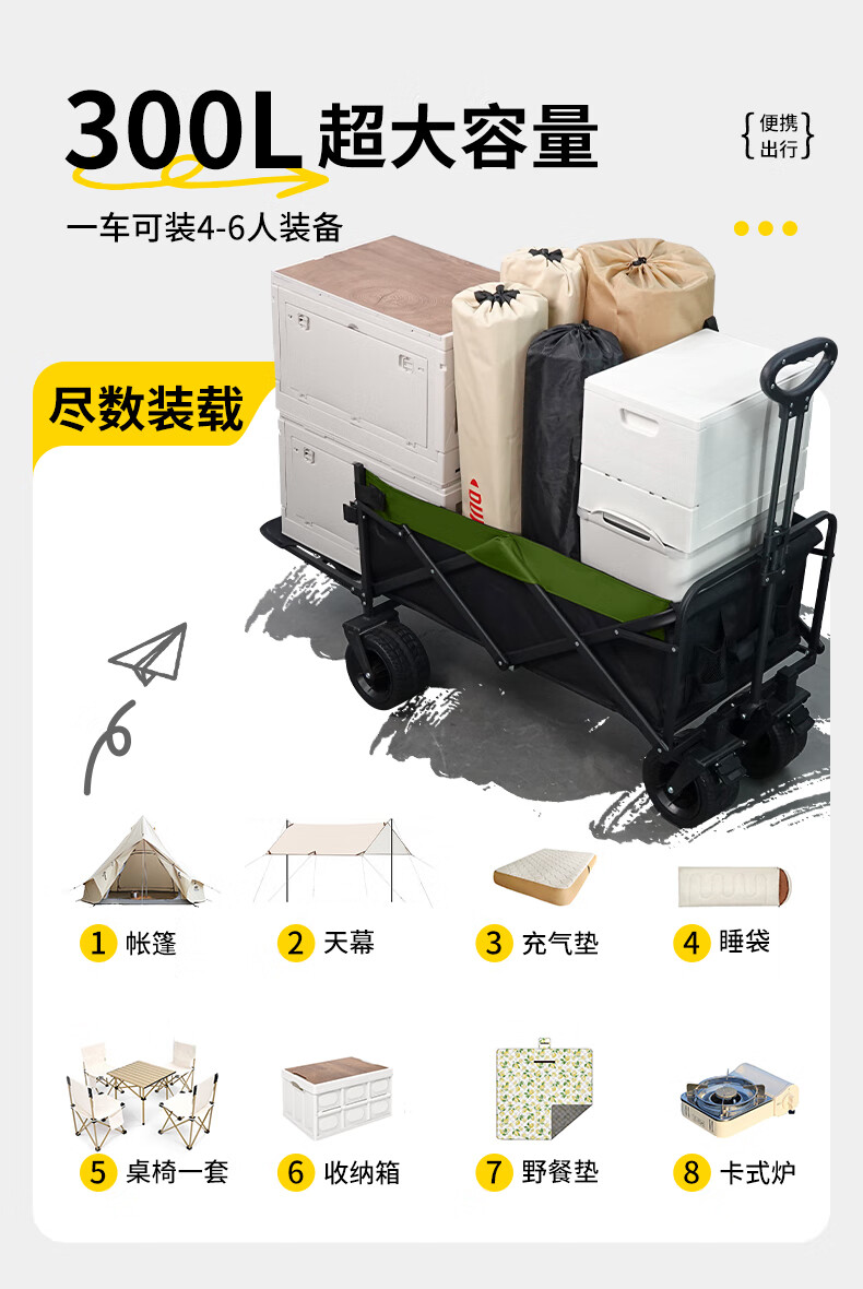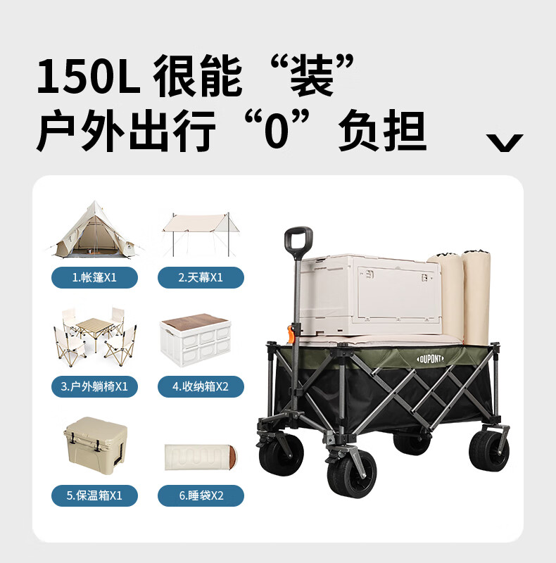 杜邦(DU PONT)户外营地车露营车推车聚拢加宽坦克轮可折叠手拉野餐车摆摊小拖车 300L-营地车【聚拢款】
