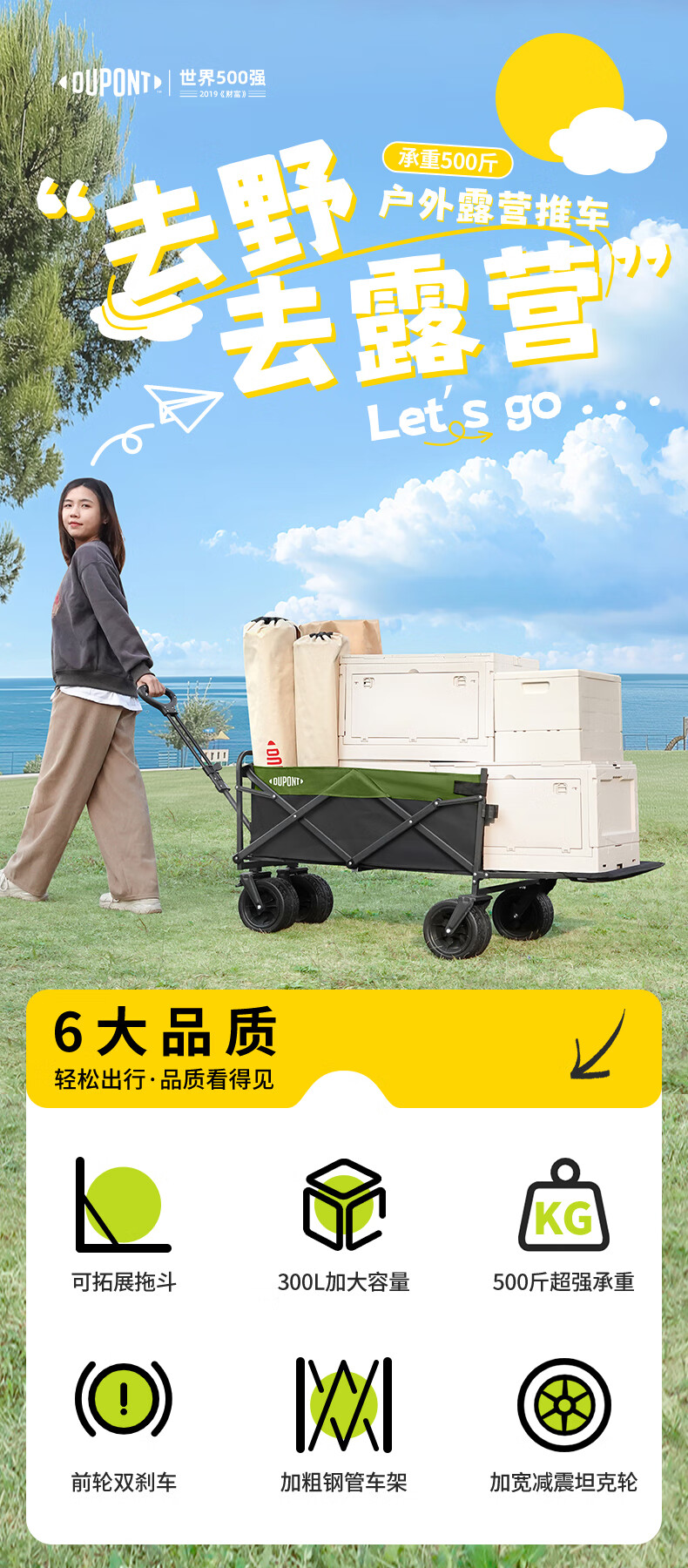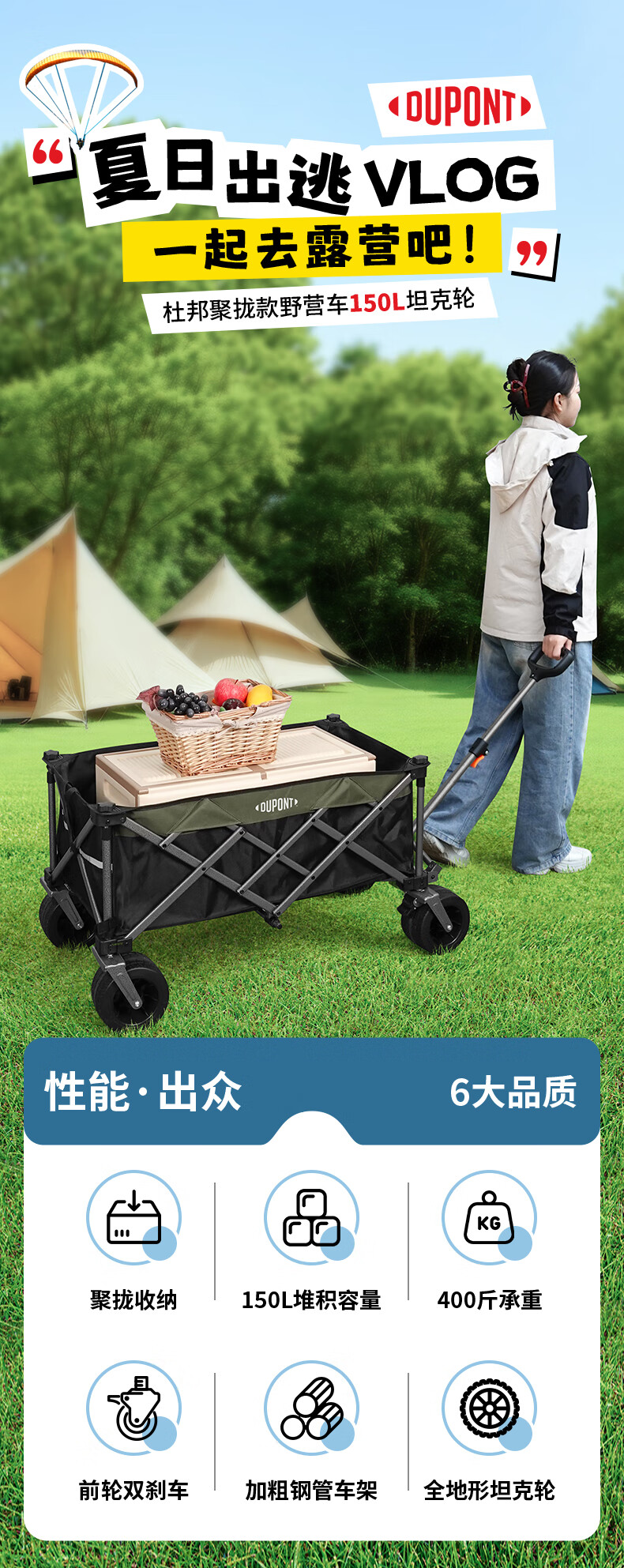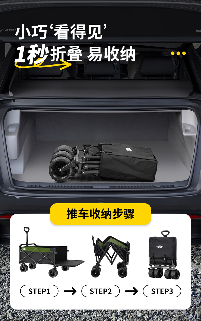 杜邦(DU PONT)户外营地车露营车推车聚拢加宽坦克轮可折叠手拉野餐车摆摊小拖车 300L-营地车【聚拢款】