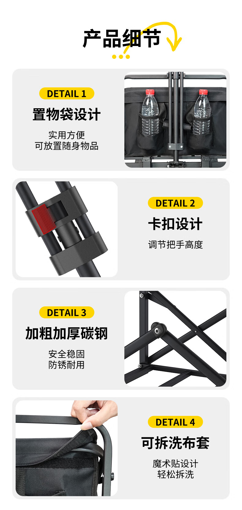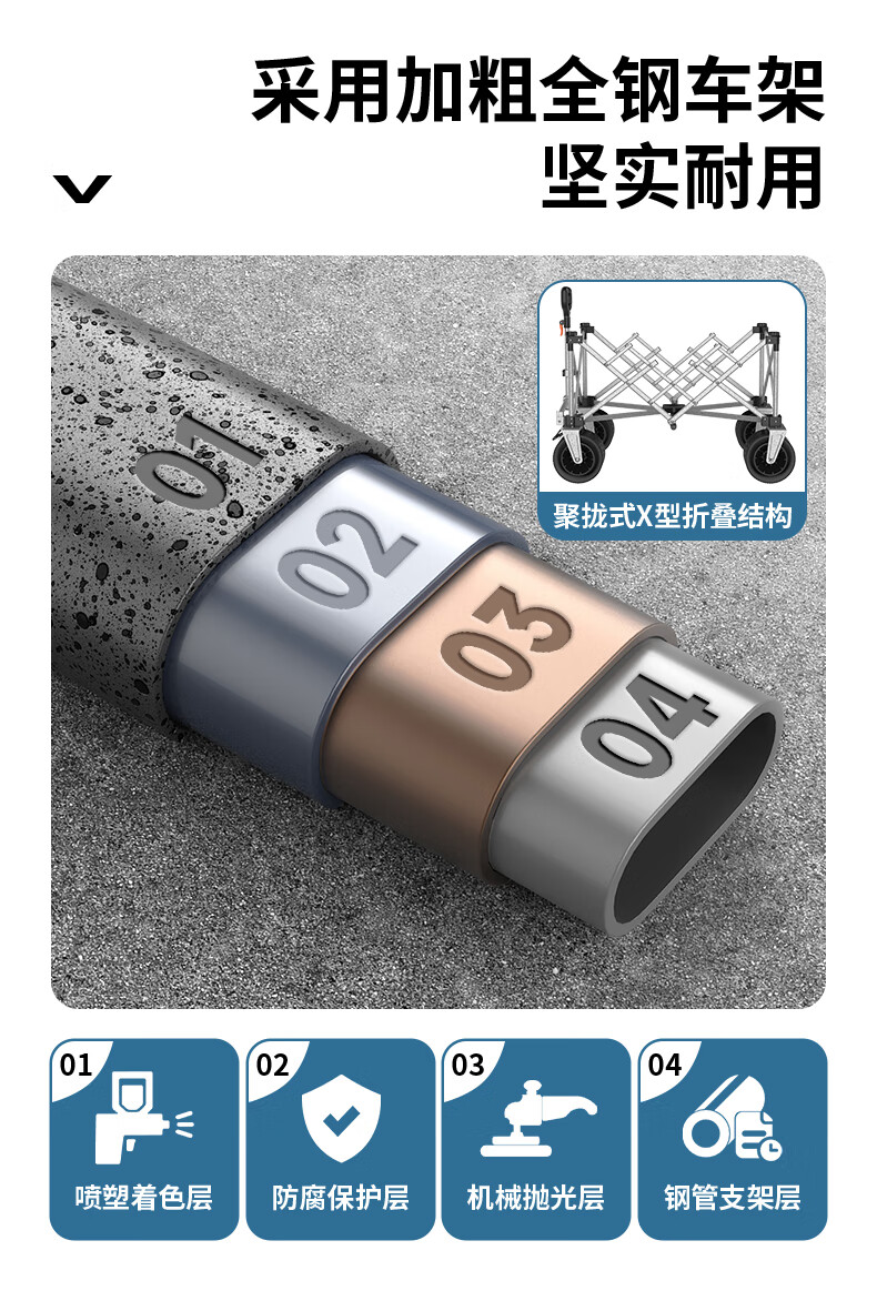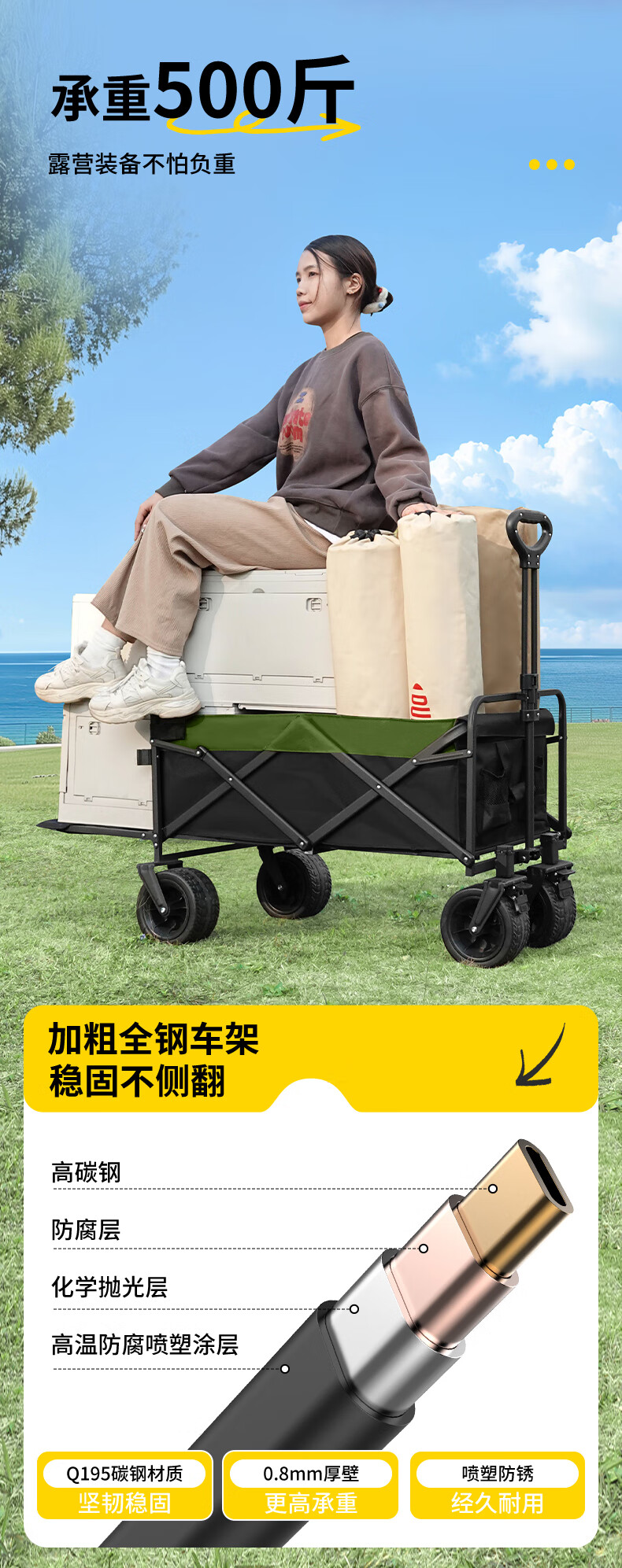 车身整体坚固结实,最大承重500斤,能满足一家露营需求